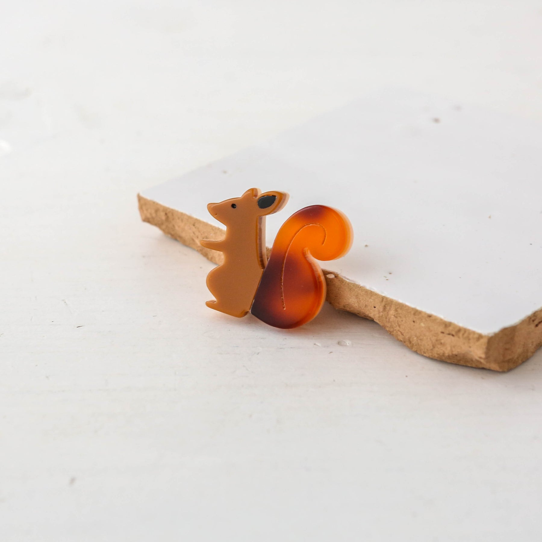 An abstract Squirrel brooch in glossy resin. Perfect for adorning the lapel of your winter coat or a favourite chunky cardigan this season.