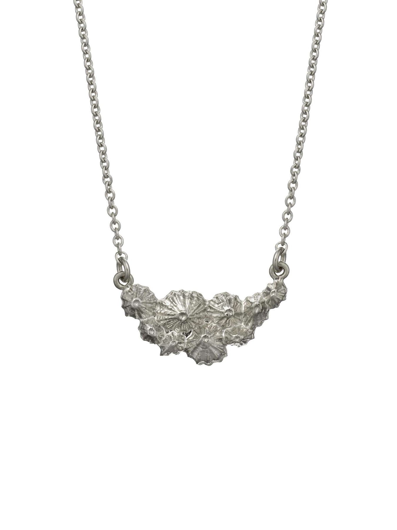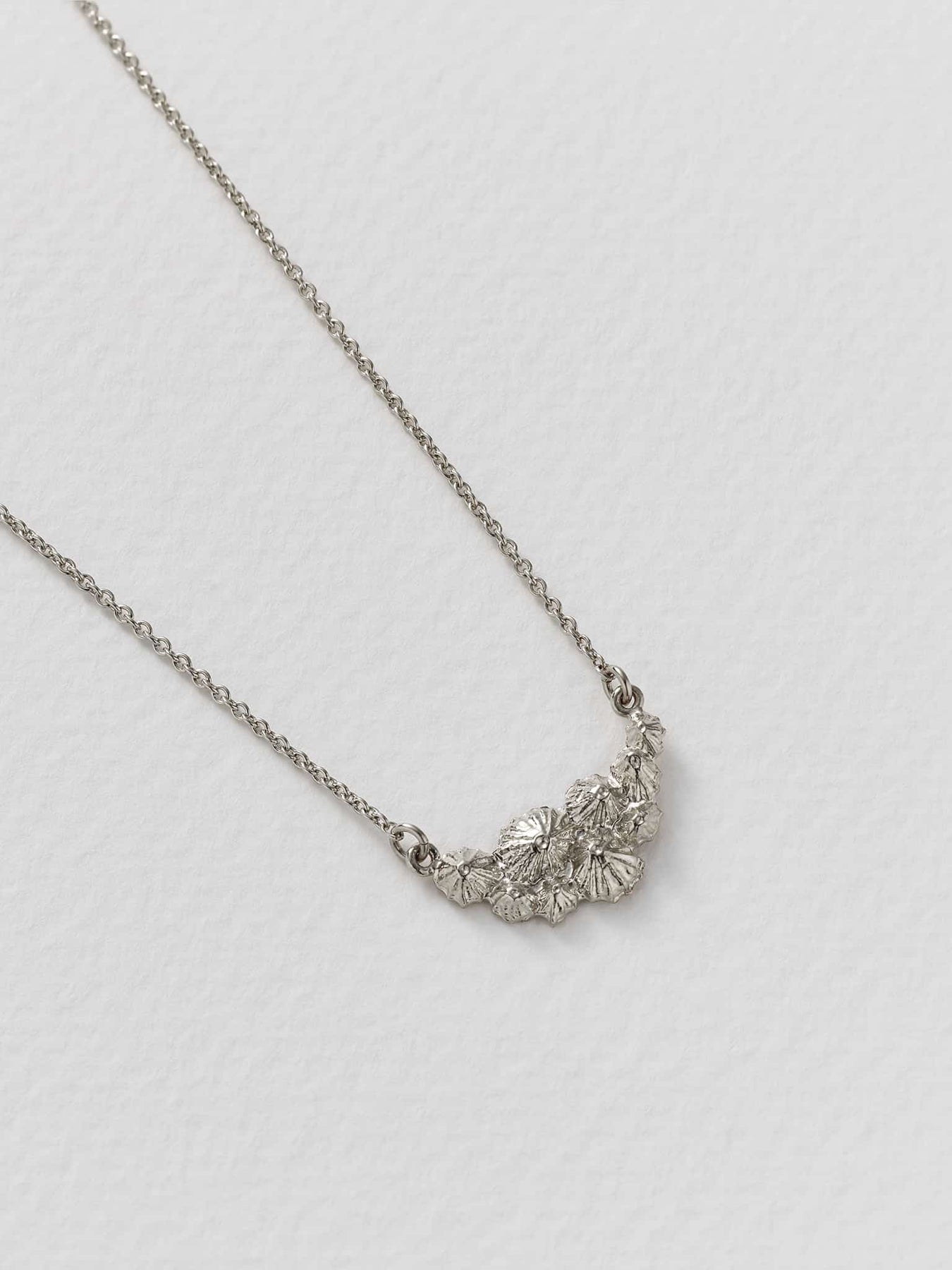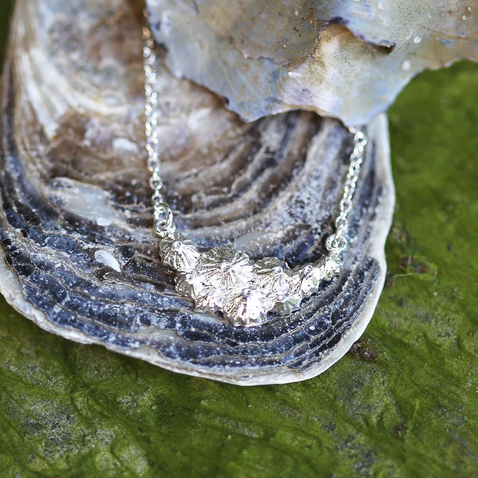 As our journey along the water’s edge takes us closer to the sea, we can’t help but take a peek into the rockpools, formed after the tide comes in. This inline necklace consists of a cluster of limpets, purposely imperfect as you would find in nature. Handmade in our London workshop.