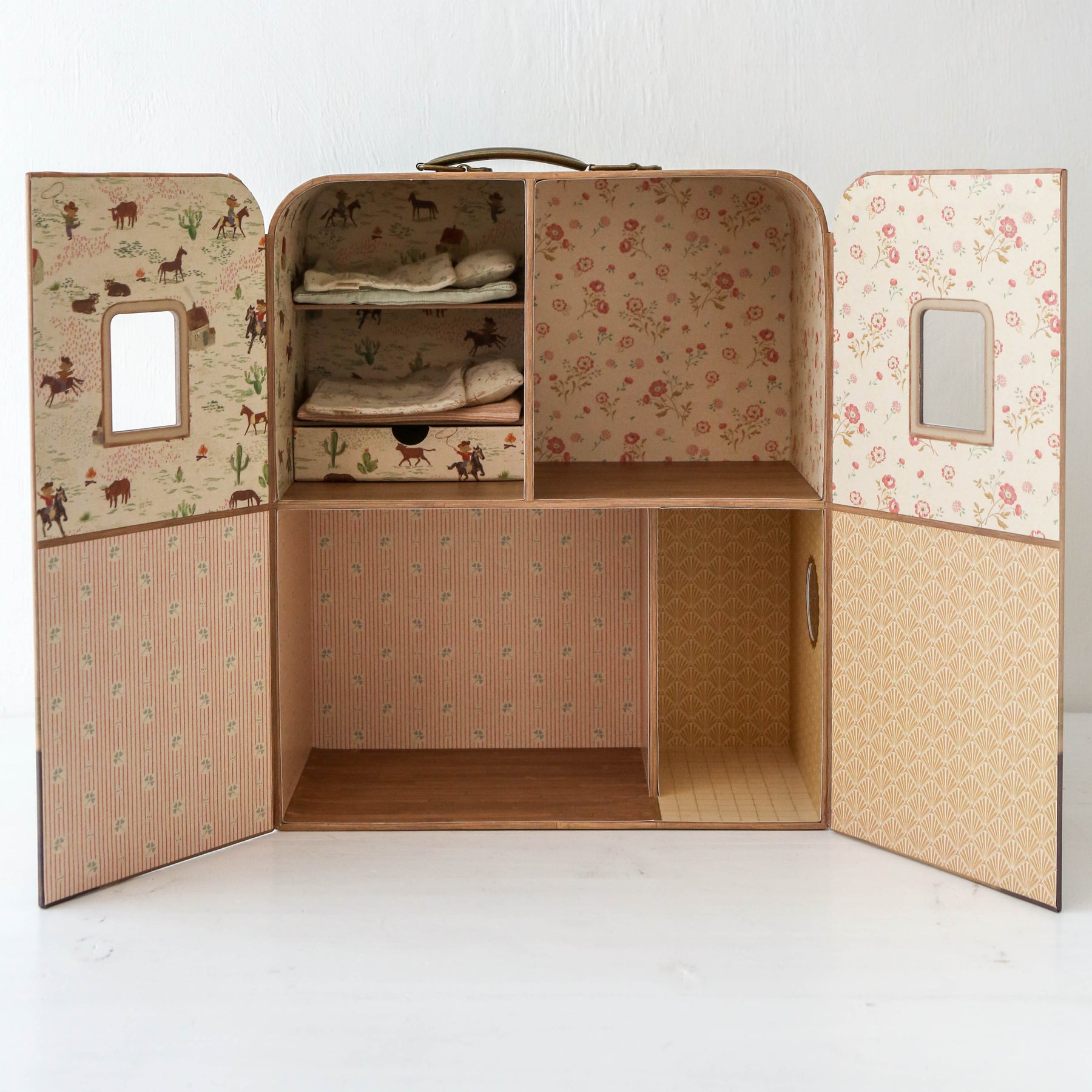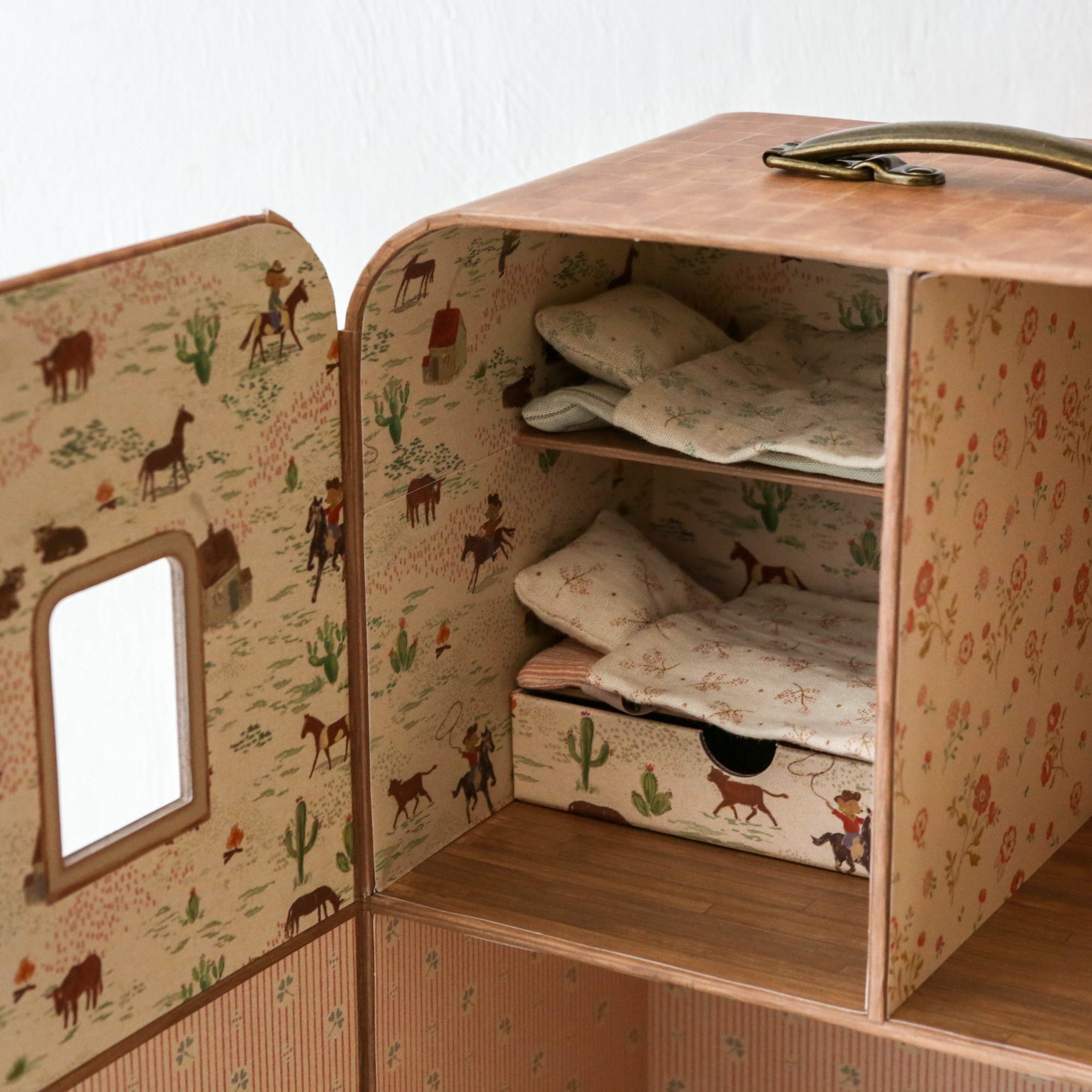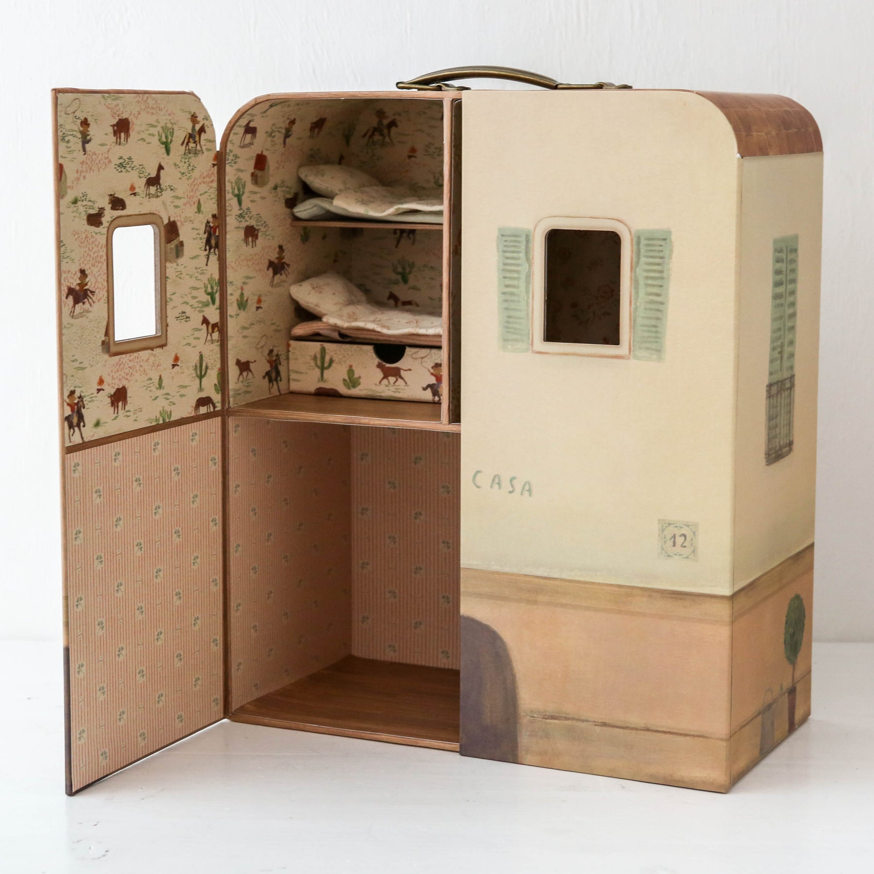 Welcome to SuitCasa - a small portable house. It fits the size: Little brother and sister mice. 2 sets of soft bedding for your friends are included, but you can buy several of other small furnitures to decorate the house. Pictured items and mice are not included, just the bedding to fit the two bunkbeds.