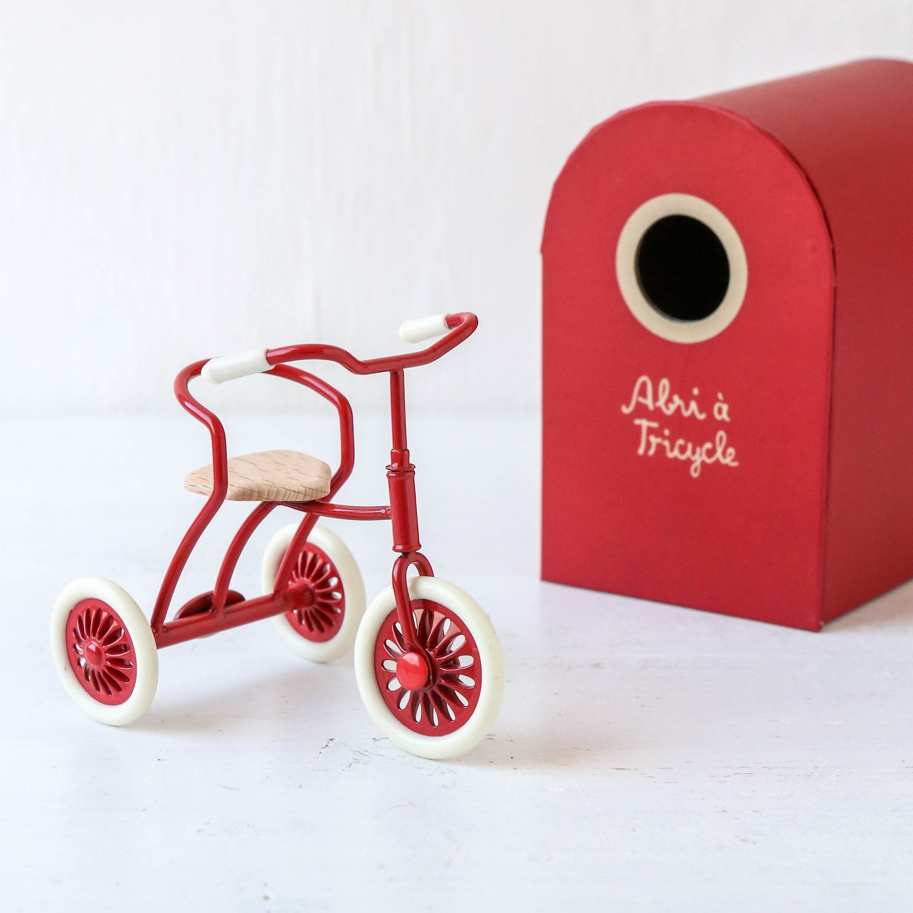 Big brother/sister mice fit this tricycle perfectly. Mice with magnets in their hands can easily hold the handles. This beautiful bike comes in a garage box to expand the play. Accessories as a basket and trailer can be purchased additionally.