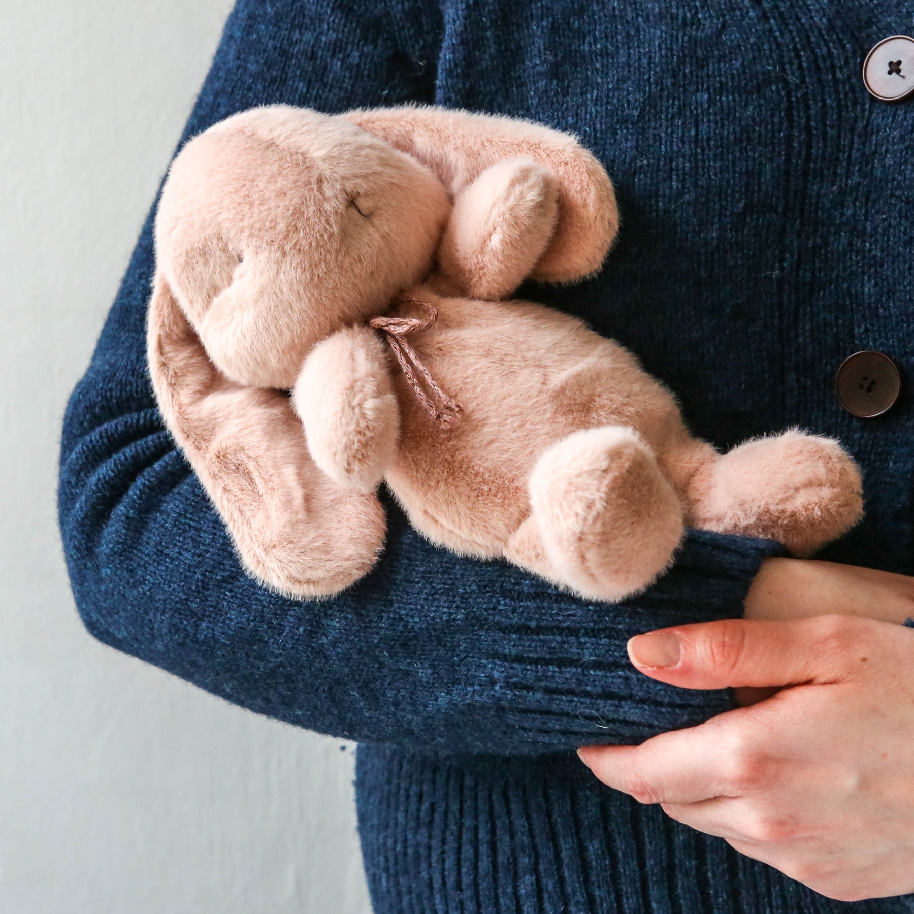 This bunny comes in very soft and unique plush fabric. It has a beautiful bow around the neck. It has a very sweet look and will soon be someones very best friend.