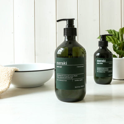 This hand soap from Meraki is gentle and effective with a lovely, fresh scent of the cactus flower, and is a replacement for our 'Men' fragrance. Naturally, the soap is cleansing and the addition aloe vera means you do not necessarily need to use a hand cream after washing hands. The hand soap is gentle and suitable for all skin types. It comes in a stylish green bottle, which will adorn your bathroom, kitchen or the utility room.
