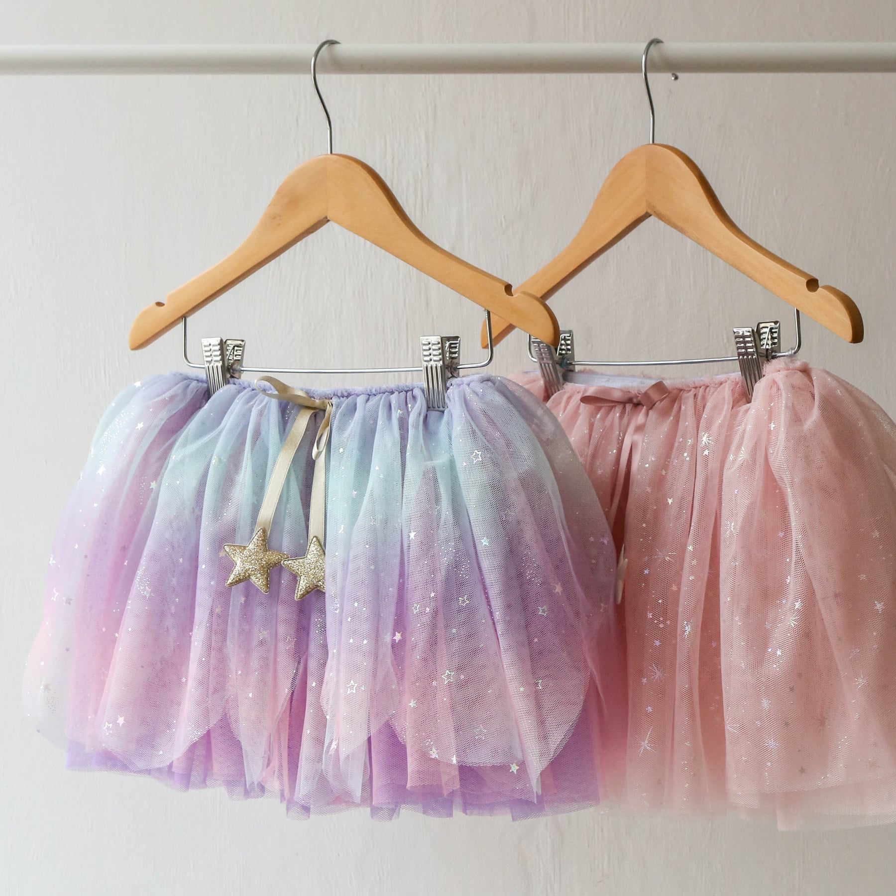 Twirl into pure enchantment with Mimi and Lula's dreamy Scallop pastel tutu! Sprinkled with shimmering holographic stars that catch every ray of light - it’s perfect for little dreamers who love to play dress up!