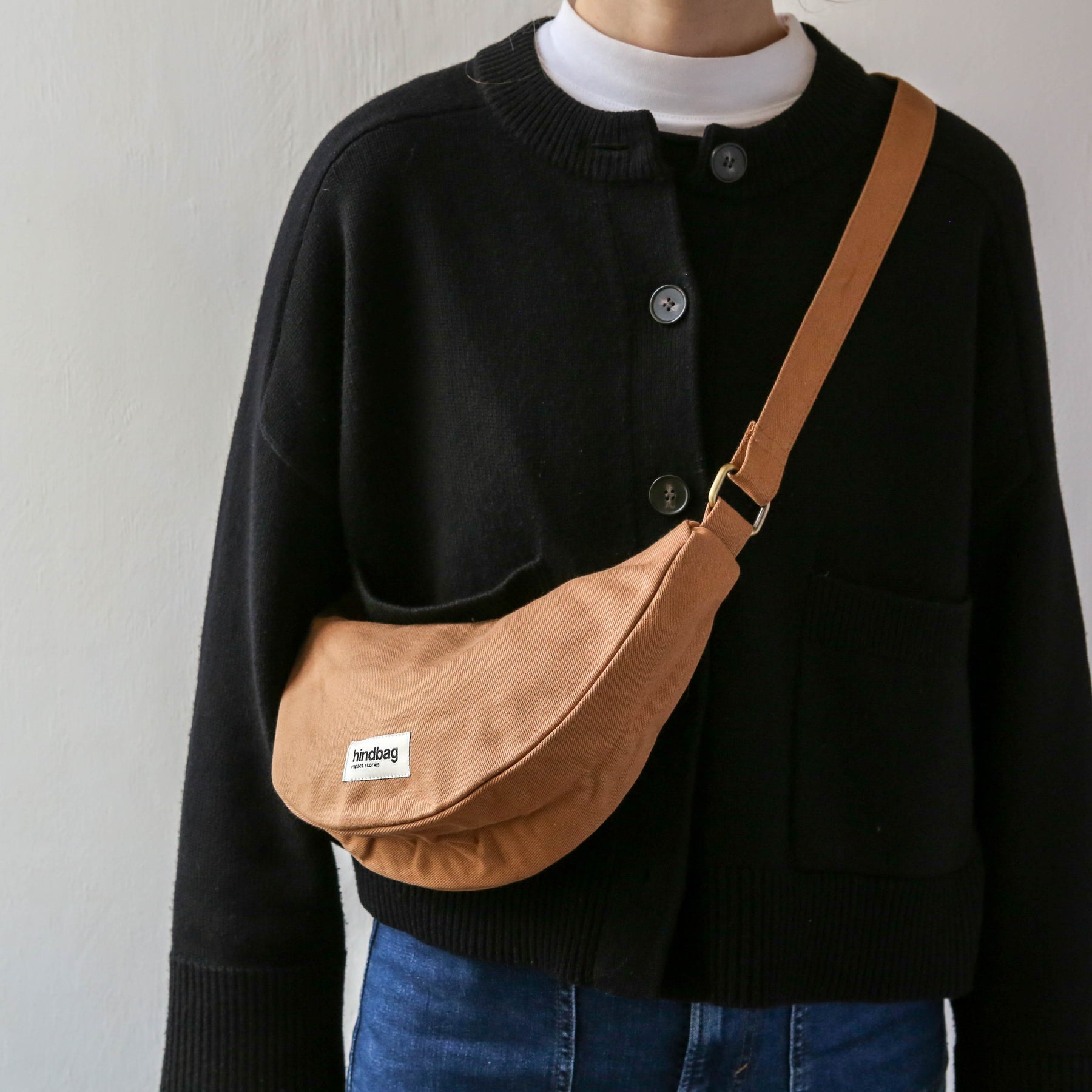 In the shape of a half-moon, the Andrea bag is halfway between a fanny pack and a messenger bag. Super practical with its opening on the top and its zipped pocket at the back. It can be worn short or long, in front or behind, or on the shoulder.