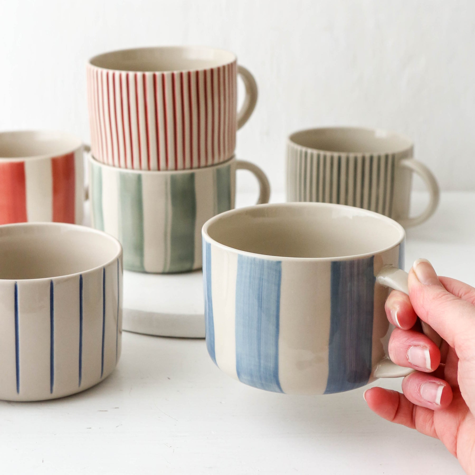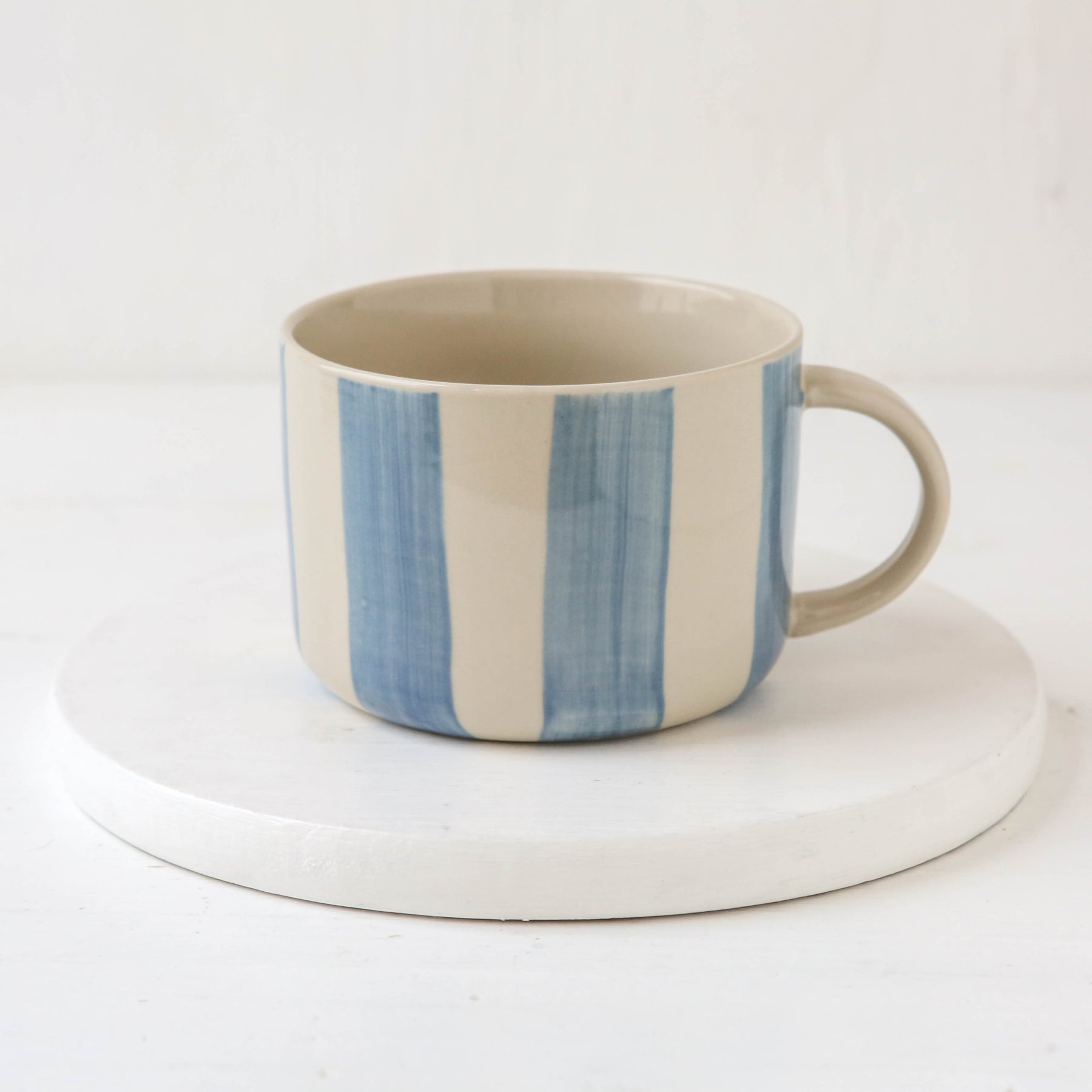 This hand-painted mug features a subtle, relaxed colour palette and the smooth finished, gently curved handle adds to its everyday appeal.