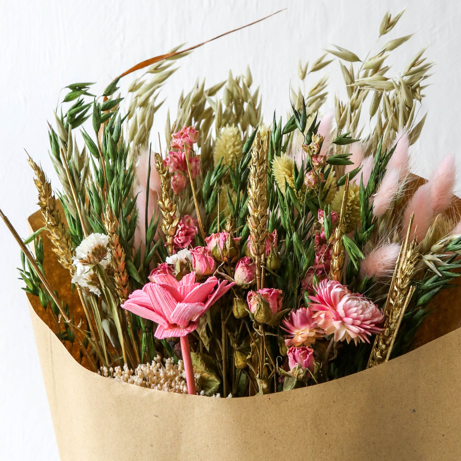 Please note that dried flowers are natural and seasonal products, which may lead to variations in flower types and colours compared to the photo.