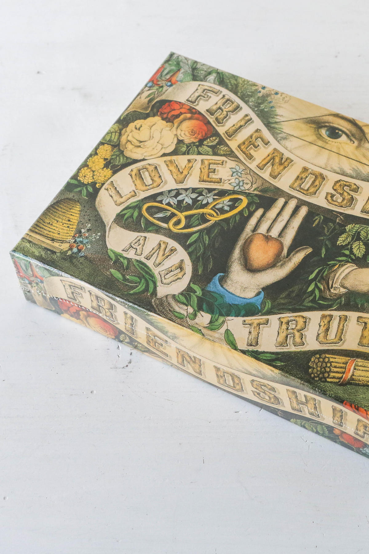 Celebrate the things that truly matter. So straightforward in its language, so rich and allusive in its symbolism, this extraordinary Victorian composition comes straight from the collection of John Derian, the artist and designer whose work with printed images of the past transports the viewer to another time and place.