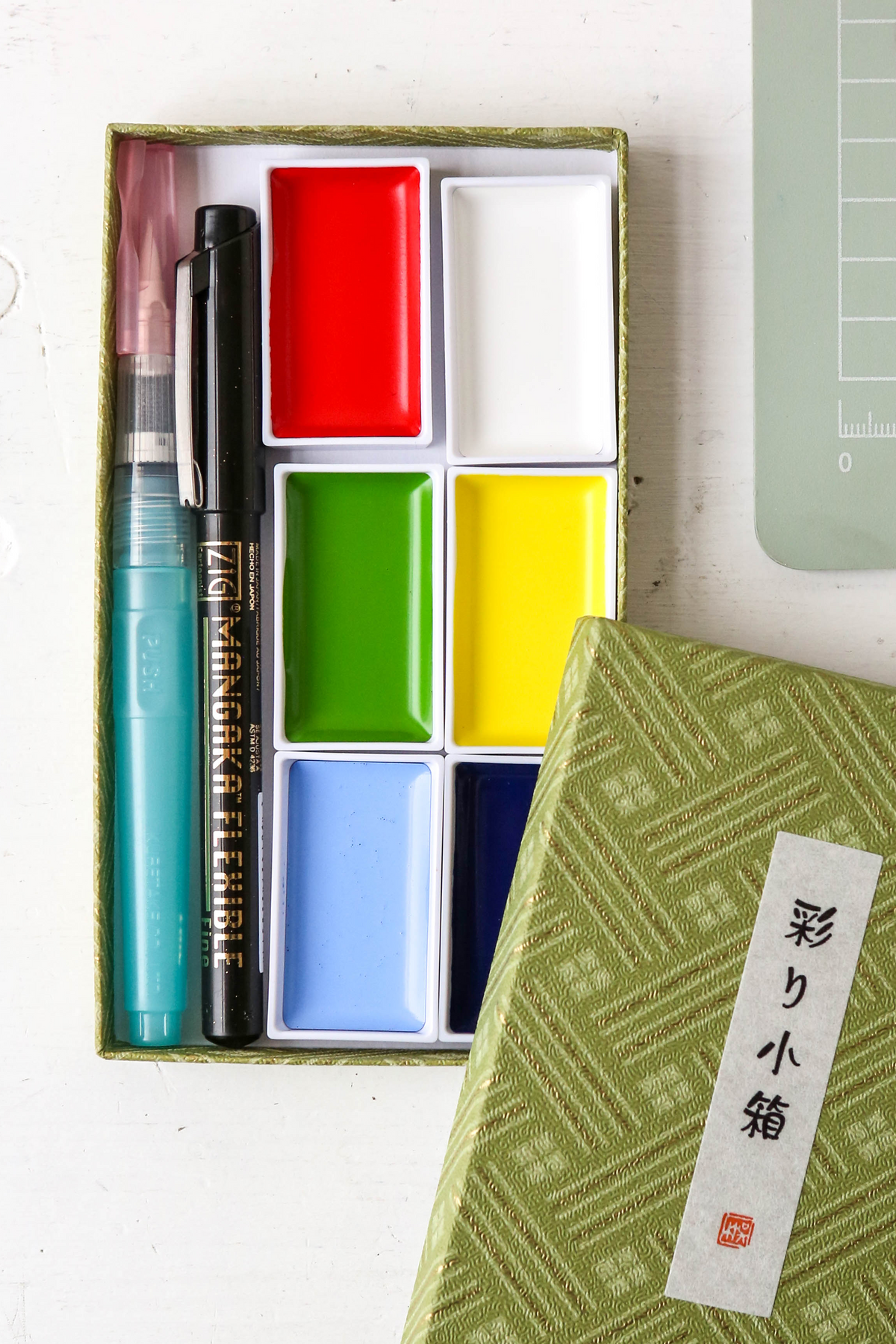 Handcrafted from professional-quality pigment inks, these traditional Japanese watercolour sets offer a creamy-smooth feel and blend beautifully, even on dark paper. Their richly pigmented colours remain vibrant without mixing.