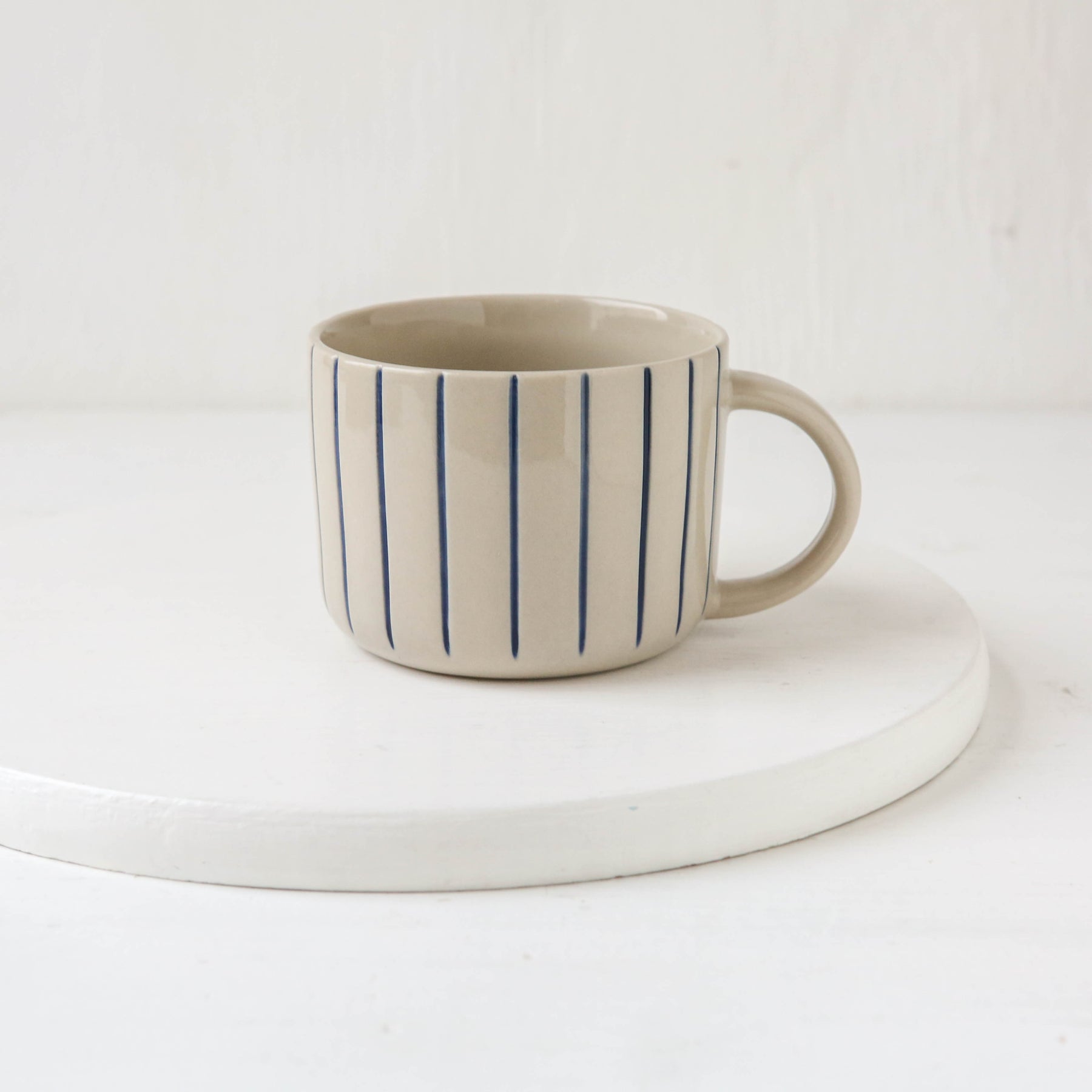 The Linear mug features tactile surface etched designs, created by hand. Each mug is then hand-painted and finished in a smooth glaze, a perfect everyday mug.