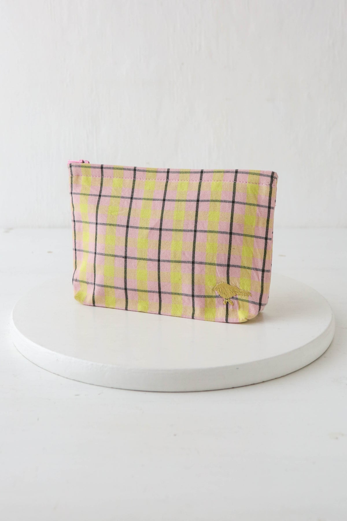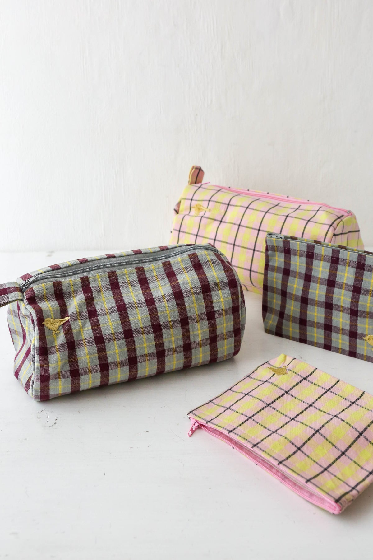 The checkered textiles are produced by an organisation that is a member of the WFTO (World Fair Trade Organisation) and exclusively uses organic cotton in its production. Its signature mark is the small, hand-embroidered yellow bird.