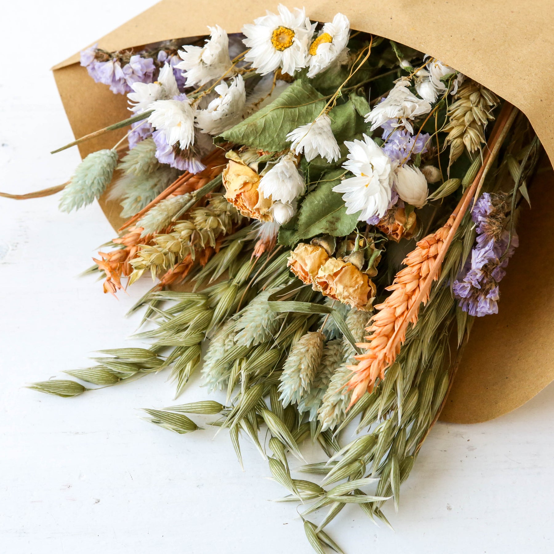 Please note that dried flowers are natural and seasonal products, which may lead to variations in flower types and colours compared to the photo.