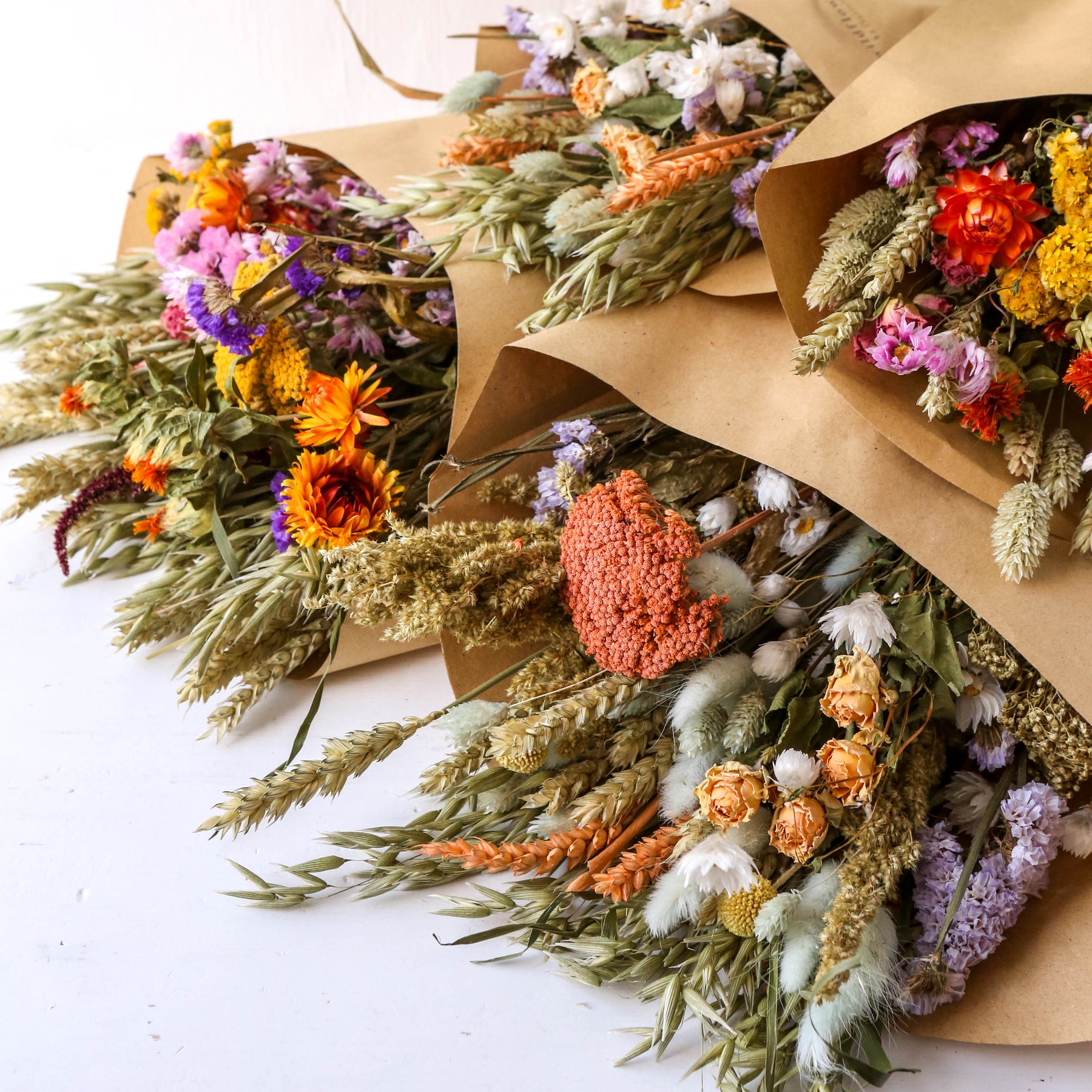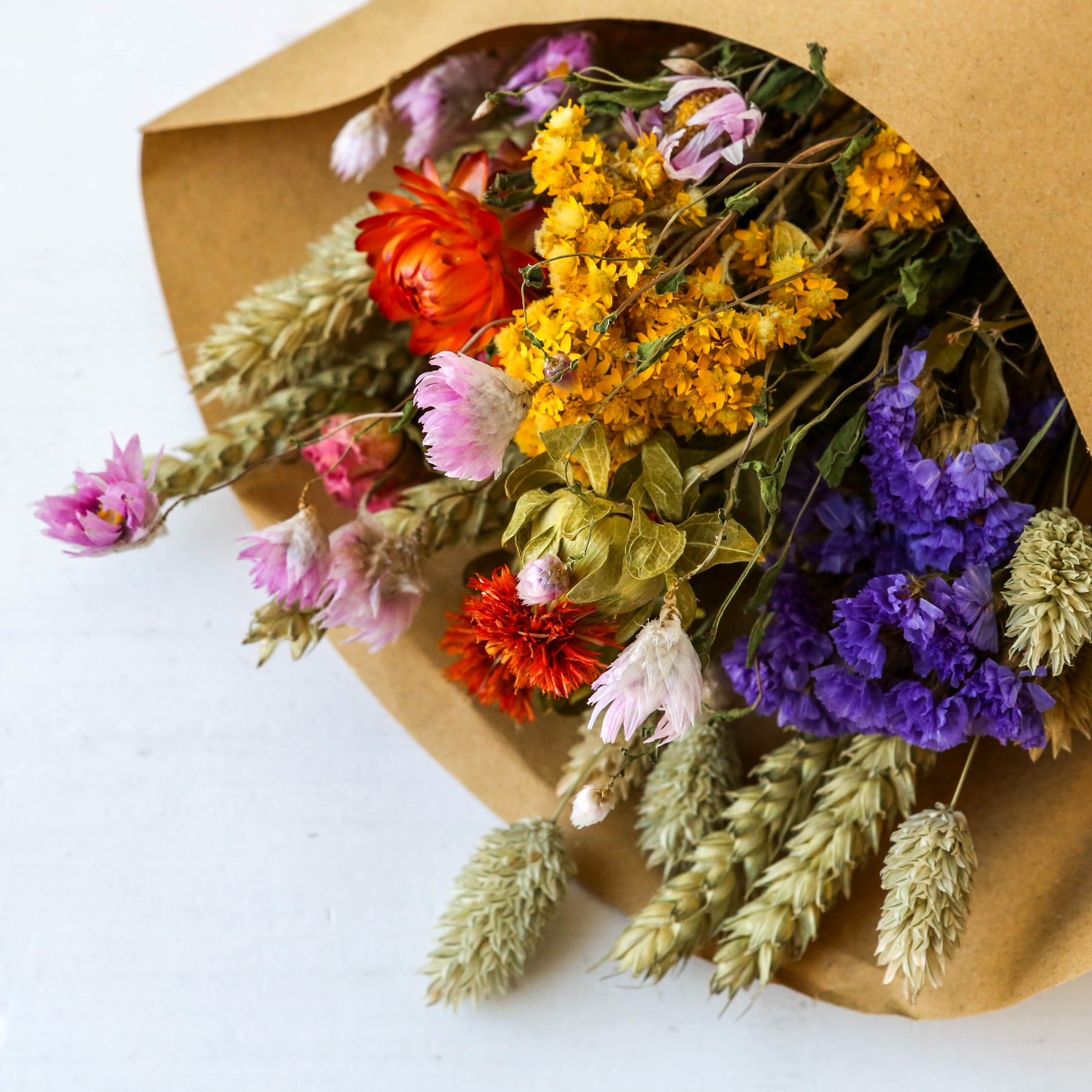 Please note that dried flowers are natural and seasonal products, which may lead to variations in flower types and colours compared to the photo.