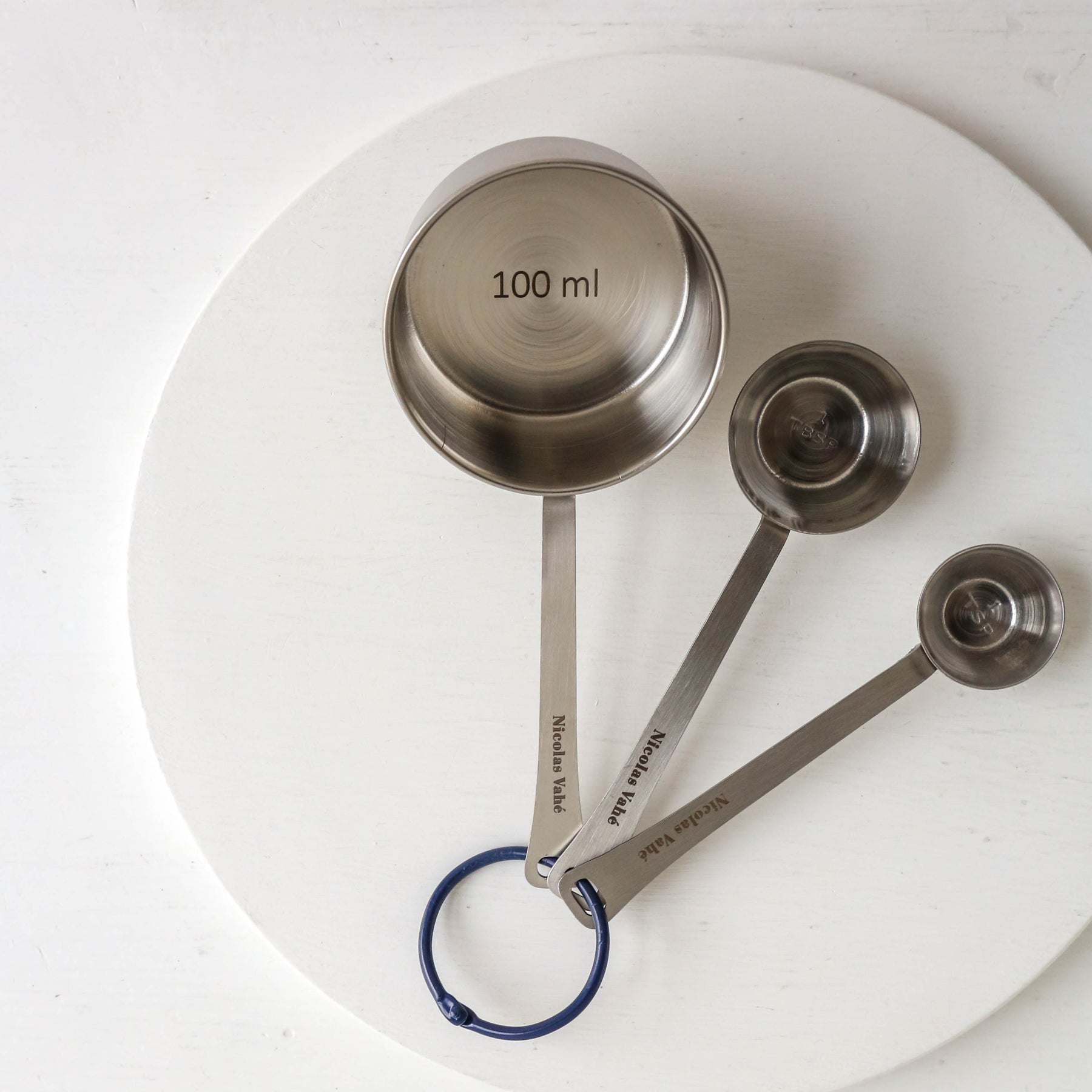 Elevate your cooking routine with this stylish set of measuring cups in a brushed silver finish with a distinctive blue ring. Enjoy precise measuring whether you’re baking a cake, prepping marinades or mixing dressings. Designed to fit perfectly in your kitchen, these cups combine timeless stainless steel with everyday function.