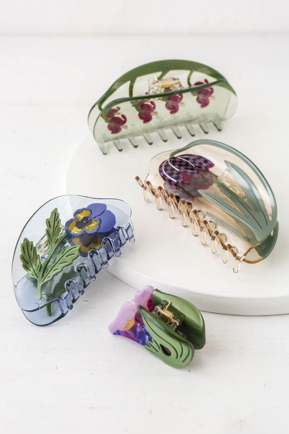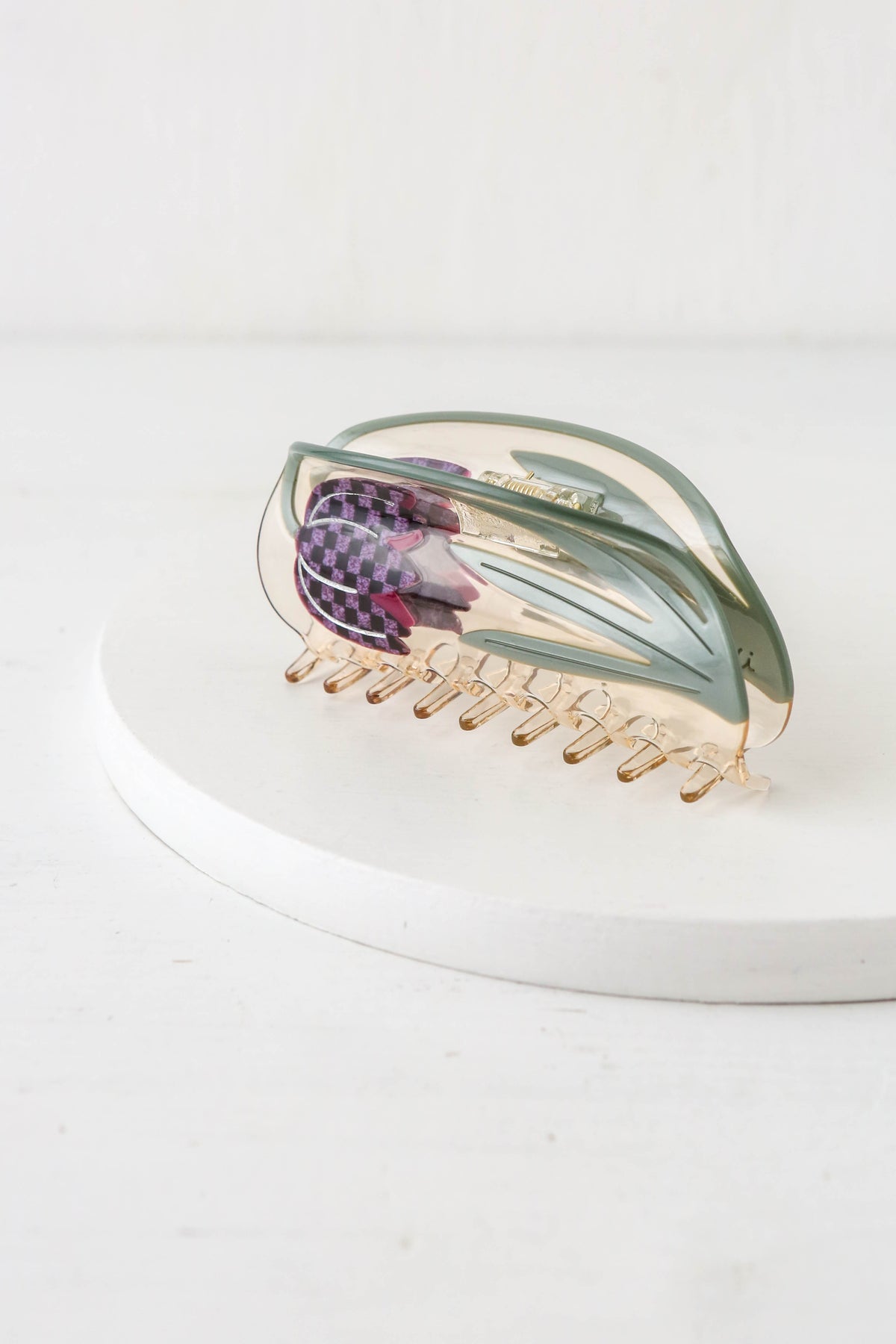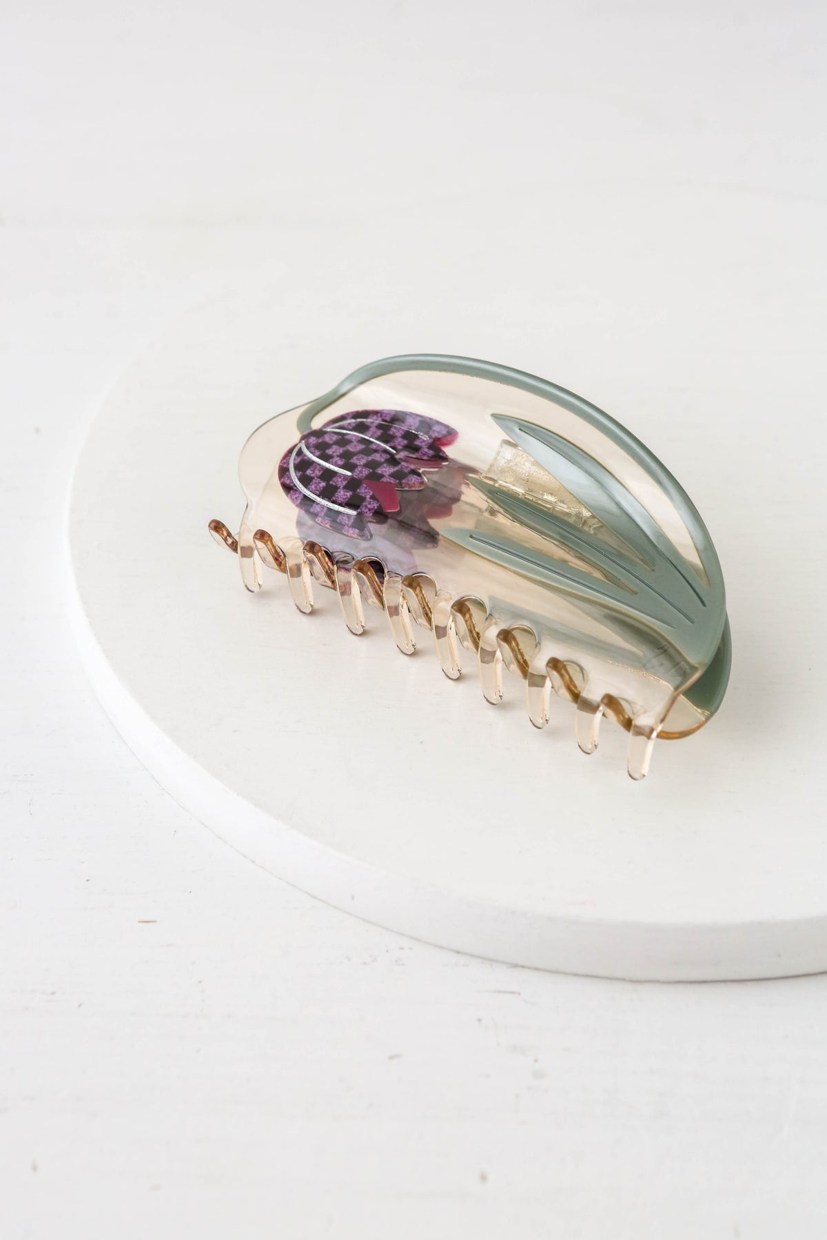 A decorative hair accessory, carefully crafted from cellulose acetate - an eco-friendly, biodegradable material made from recycled wood pulp.