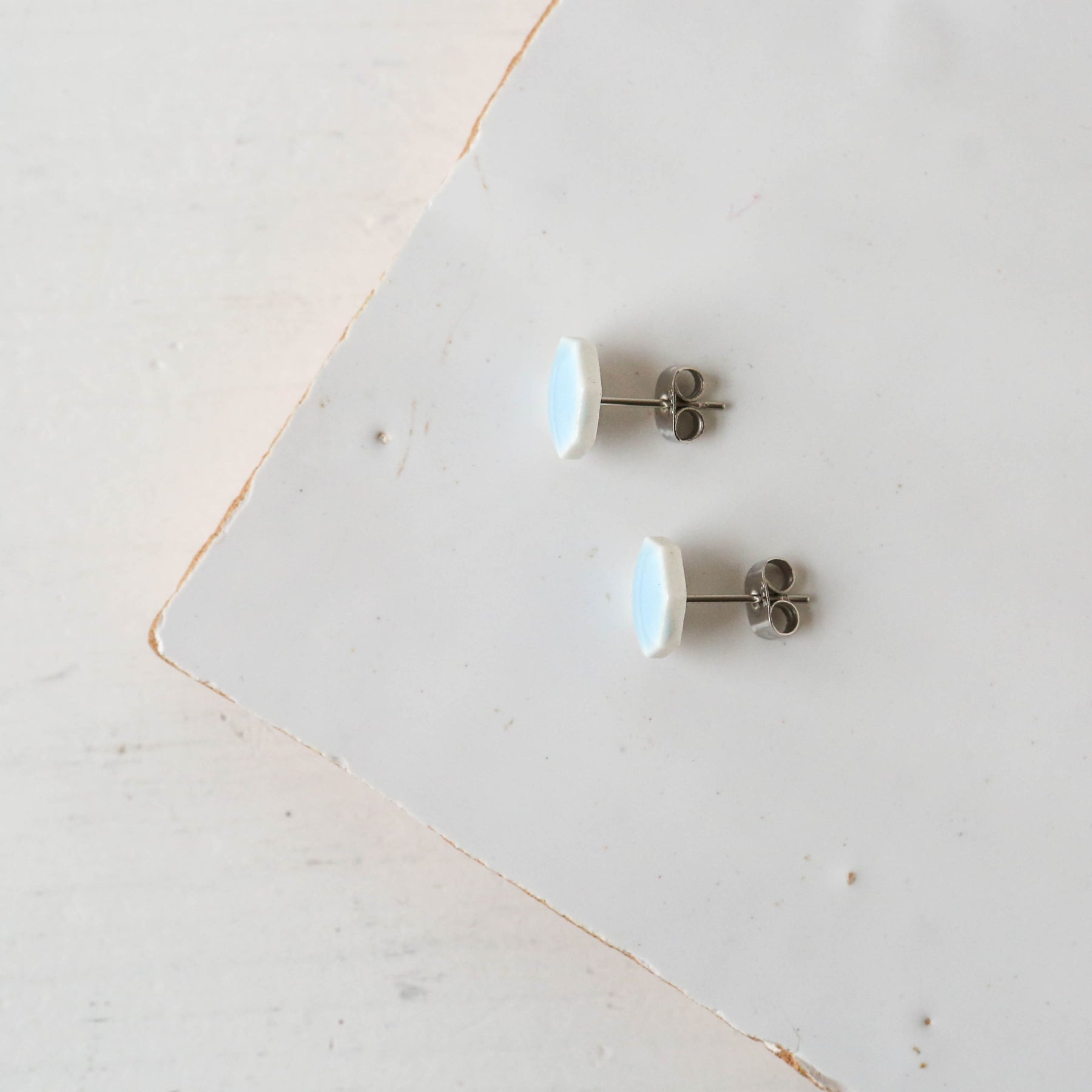 Glazed Heptagon Tile Stud Earrings - Sky