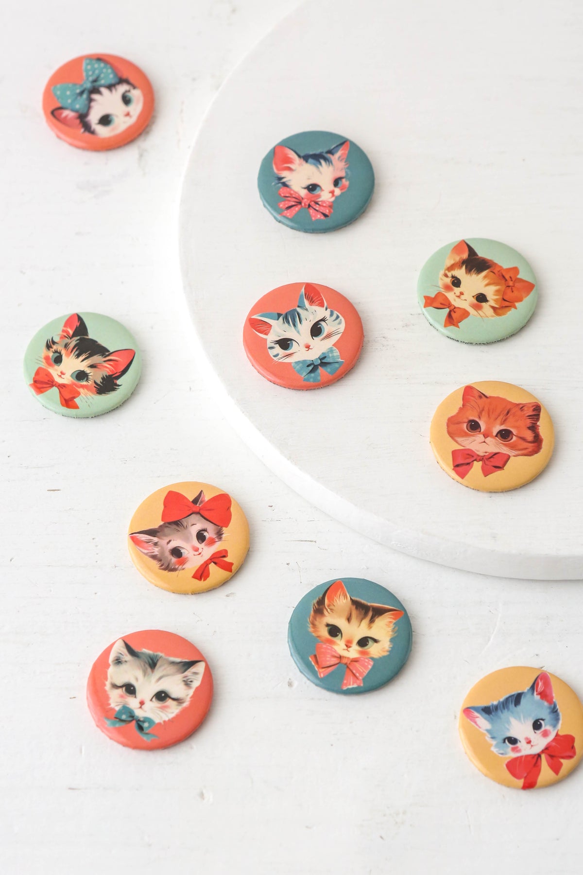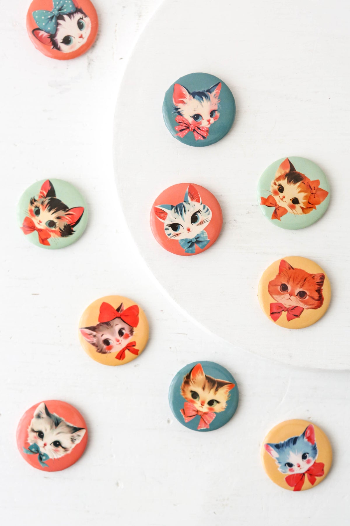 Pin badges featuring super cute kittens.