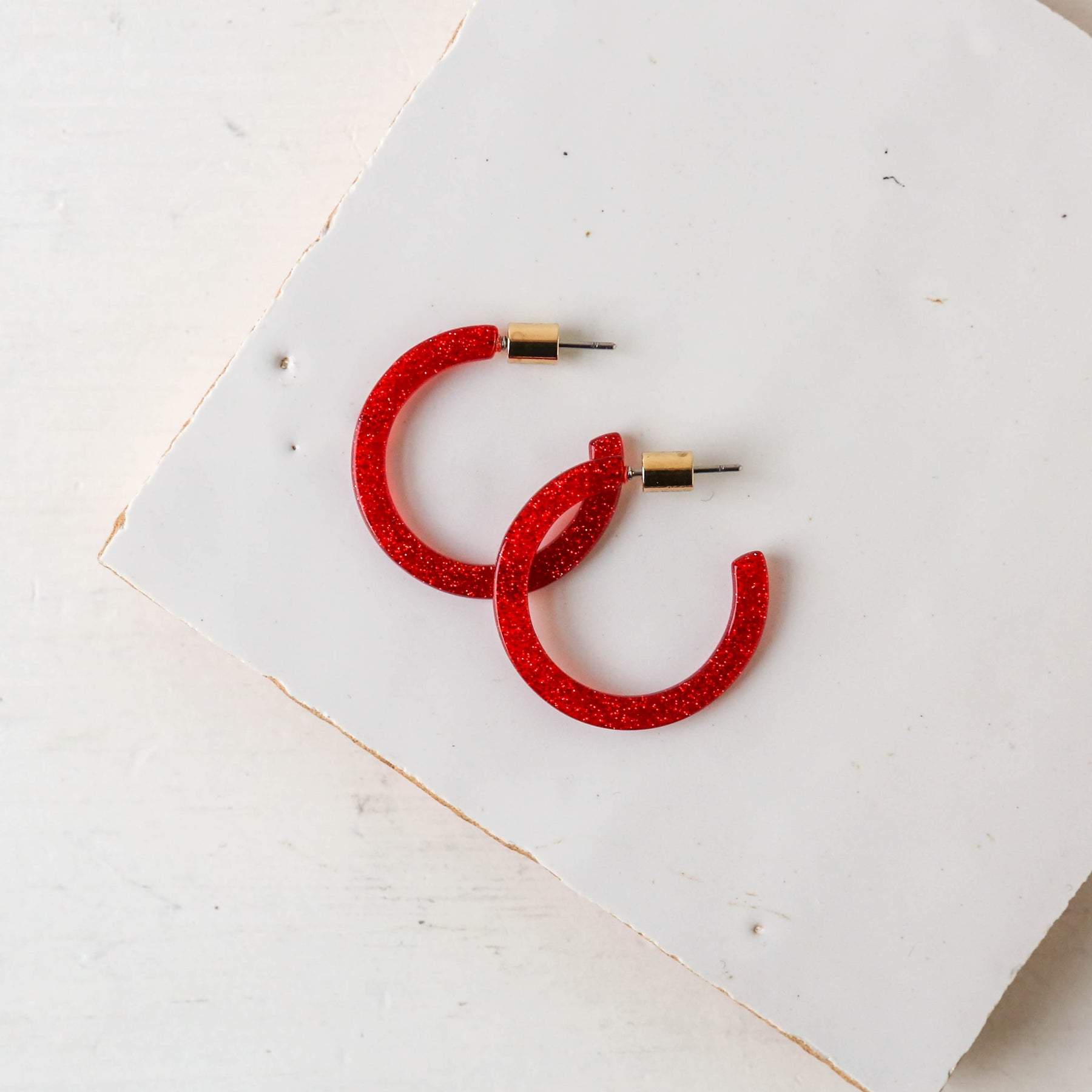With a festive, sparkly finish, these resin hoop earrings are a bold addition to your jewellery collection. Made with sustainable resin, which Big Metal source from leftover product of glass frame makers. They then recycle it to create their vibrant patterns.