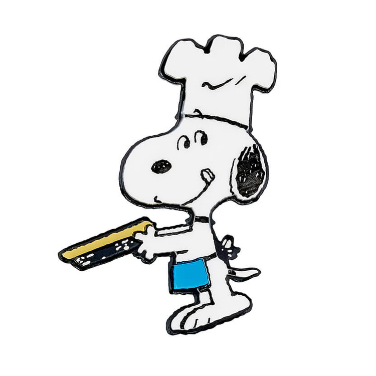 "Tonight, we feast!" Cook up something good with the Snoopy Chef Brooch. We've created Charles M. Schulz's much-loved beagle as the World Famous Chef in laser cut and layered 100% recycled acrylic. A tasty treat for Peanuts fans, pin against chef whites to bold stripes...