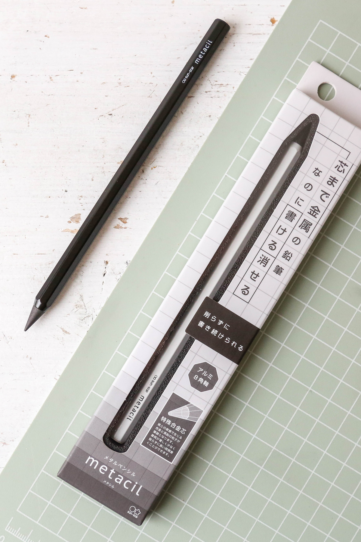 The Metacil Pencil has a special core that is made from an metal alloy containing graphite. This alloy produces a line when friction is applied and due to it's special properties. The Metacil is capable of writing a 16km long straight line without sharpening, perfect for writing on the go!