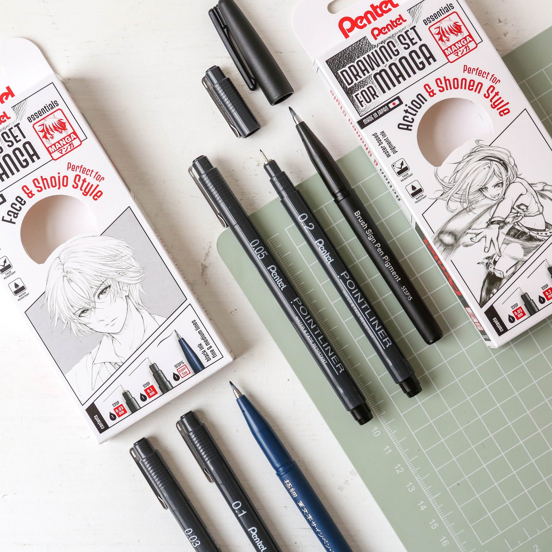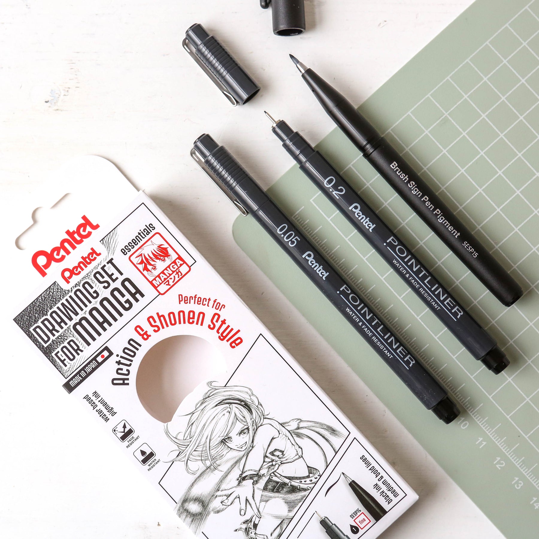 Unleash your creativity with the Pentel Manga Masters Pen Set – designed for all Manga lovers! Choose from two 3 piece packs: