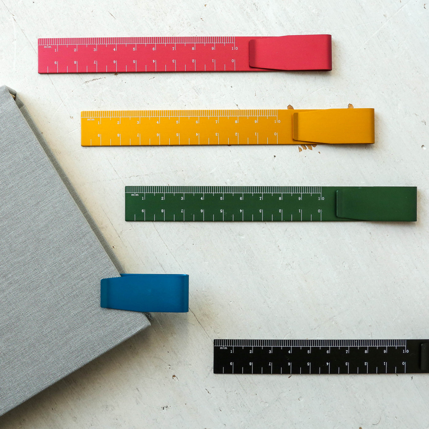 The Clip Ruler from Hightide is a practical and colorful tool. Thanks to its thin aluminium body and the handy clip, this ruler is extremely light and can be clipped onto your notebook, which makes it the perfect on-the-go accessory.