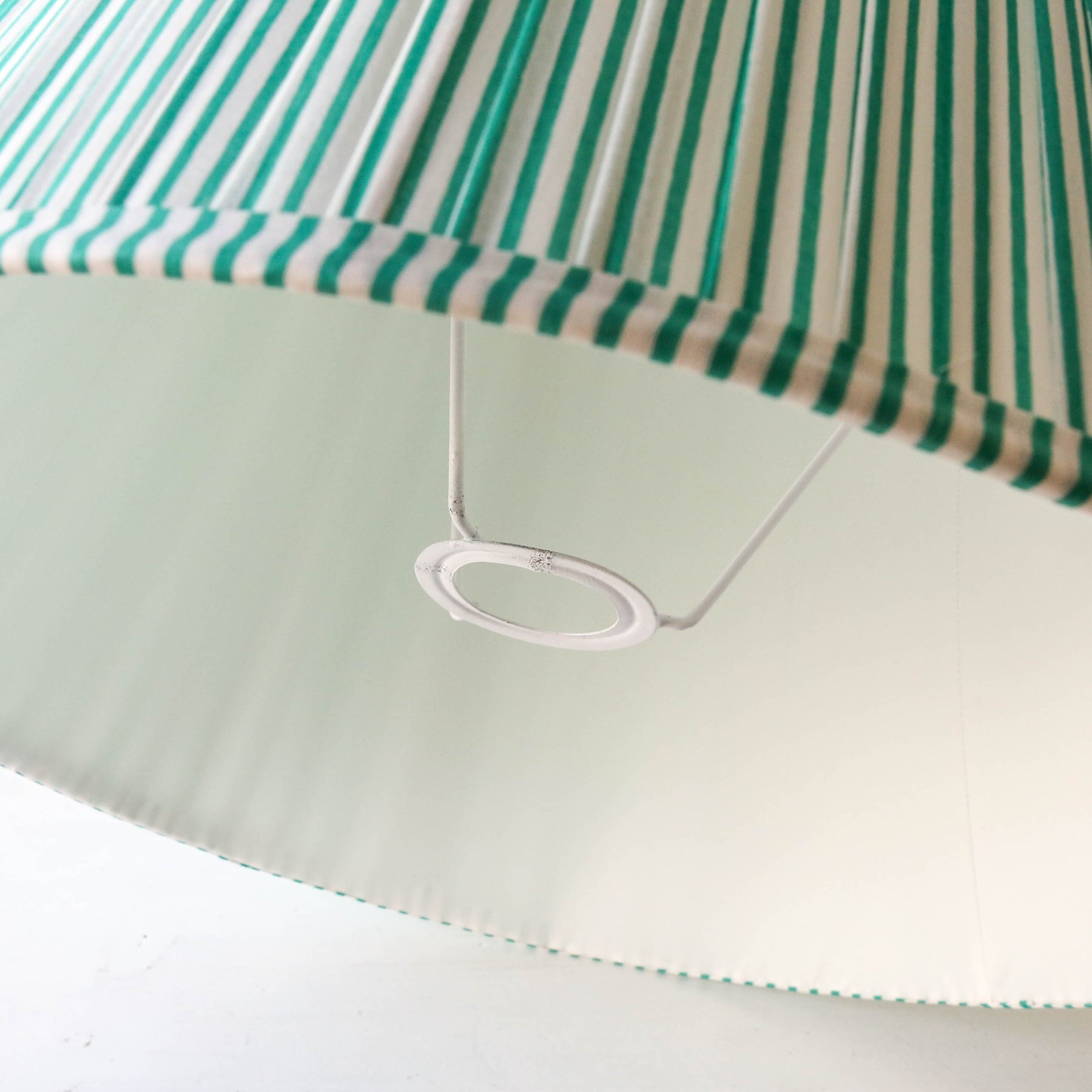 This beautifully crafted Indian hand block printed pleated cotton lampshade comes in a fresh mint and white striped design, hand pleated to make this beautiful shade.