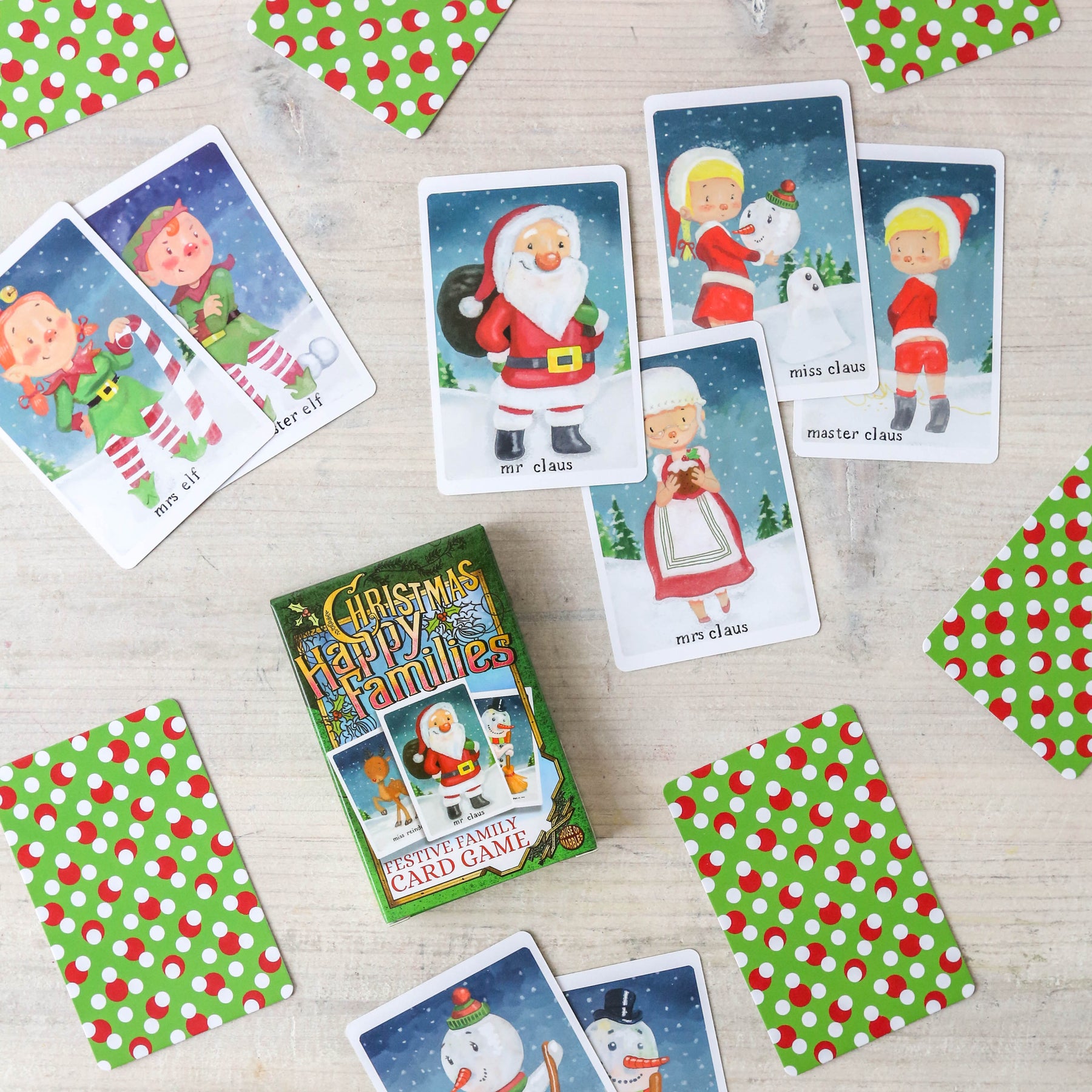 This jolly version of happy families would make a great table game on Christmas day. One of the best-loved family card games ever, with a seasonal twist! The unique festive families include the Robins, the Snowmen, The Cherubs and many more.