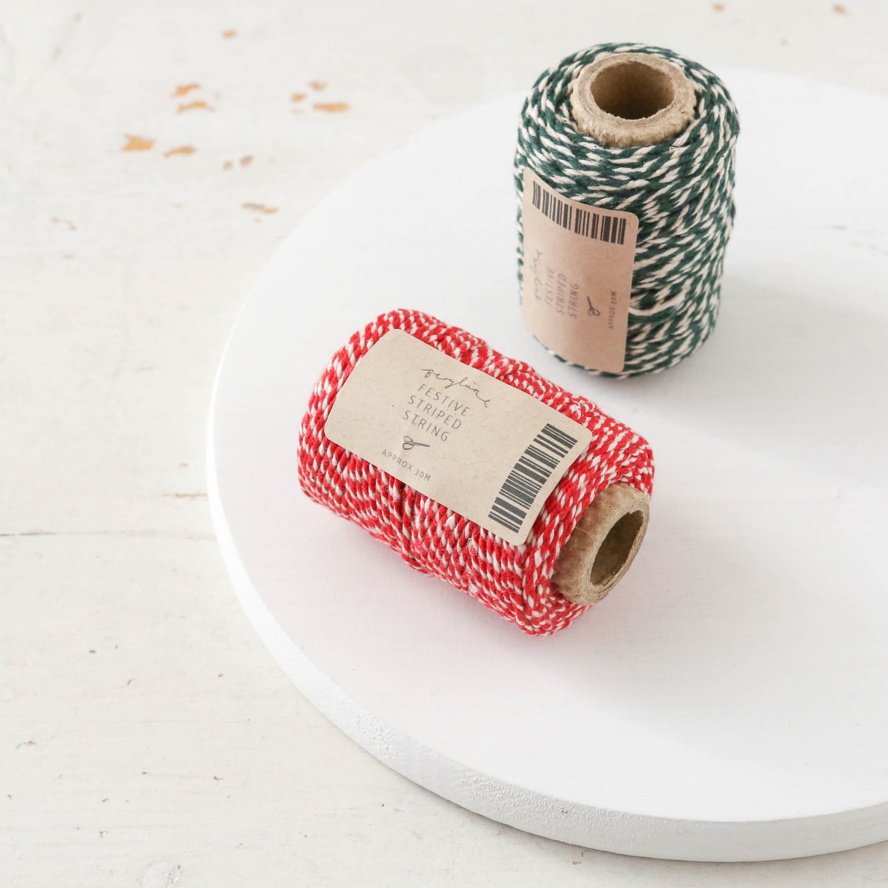A ball of striped string, perfect for present wrapping. Looks especially effective when paired with brown paper; Julie Andrews would approve!