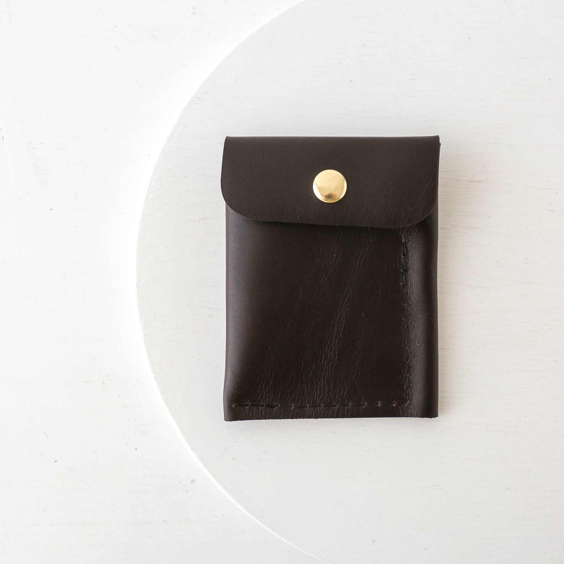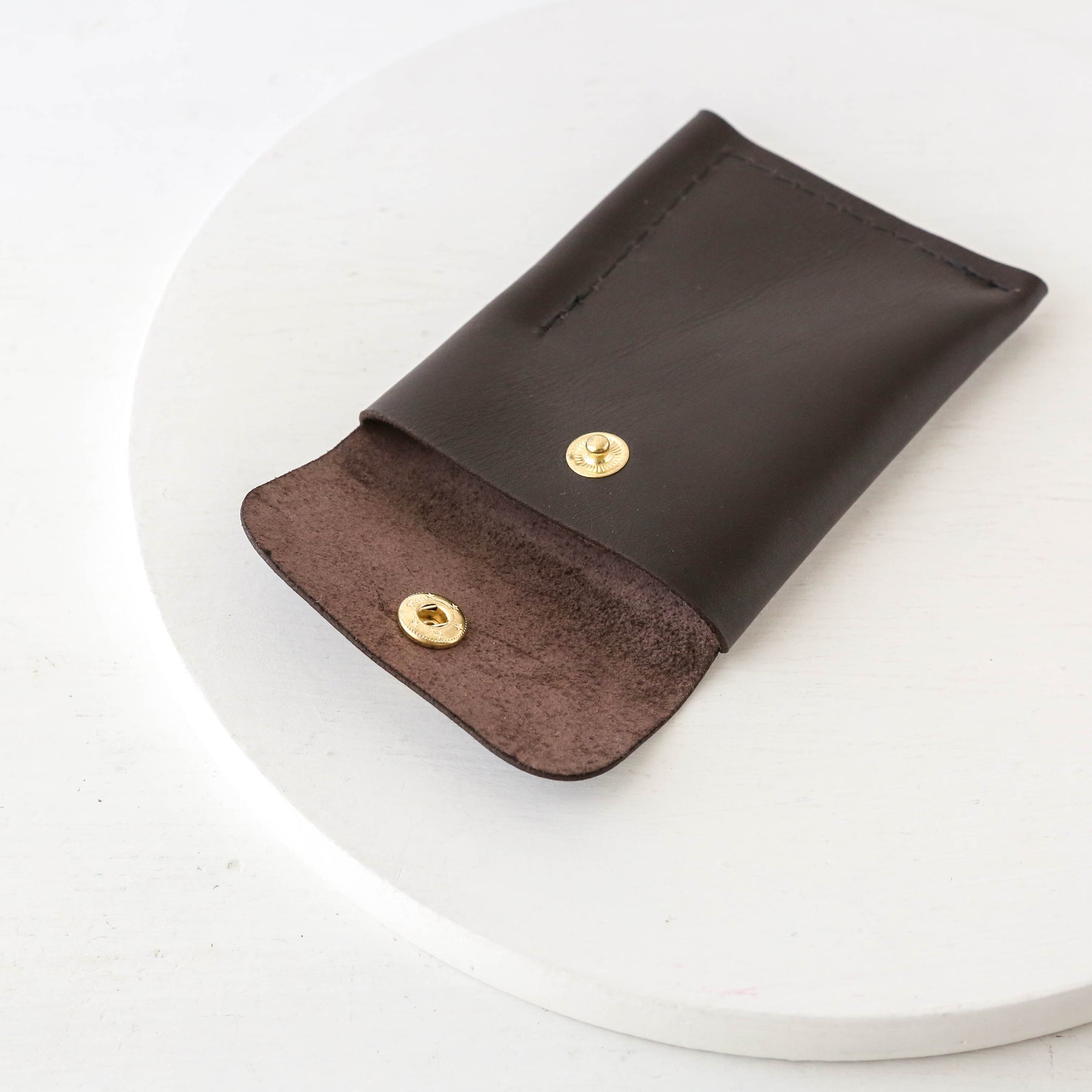 Stitched sides and a popper closure, made from beautiful vegetable tanned Italian leather.