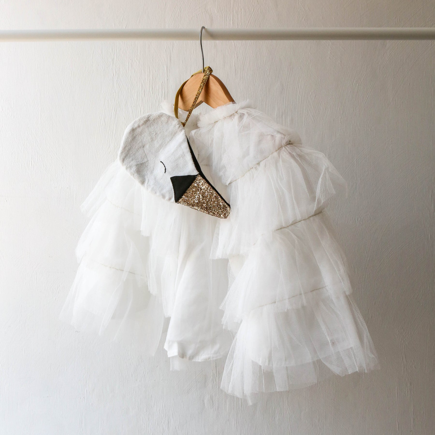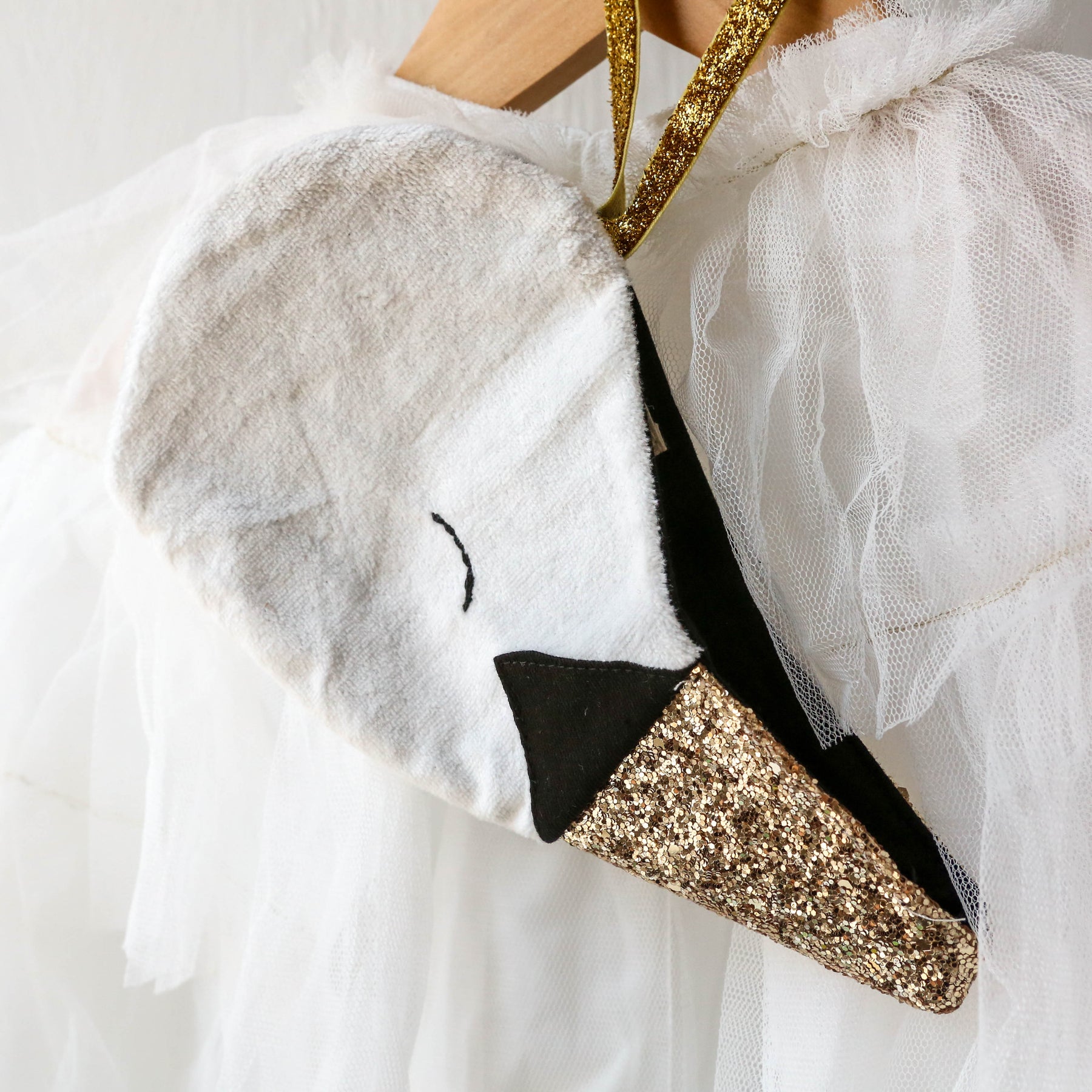 This delightful dress-up kit will instantly transform your little one into a beautiful swan. Featuring delicate tulle wings and a headpiece crafted from soft velvet, cotton and glittery fabric with embroidered details. Gorgeous!