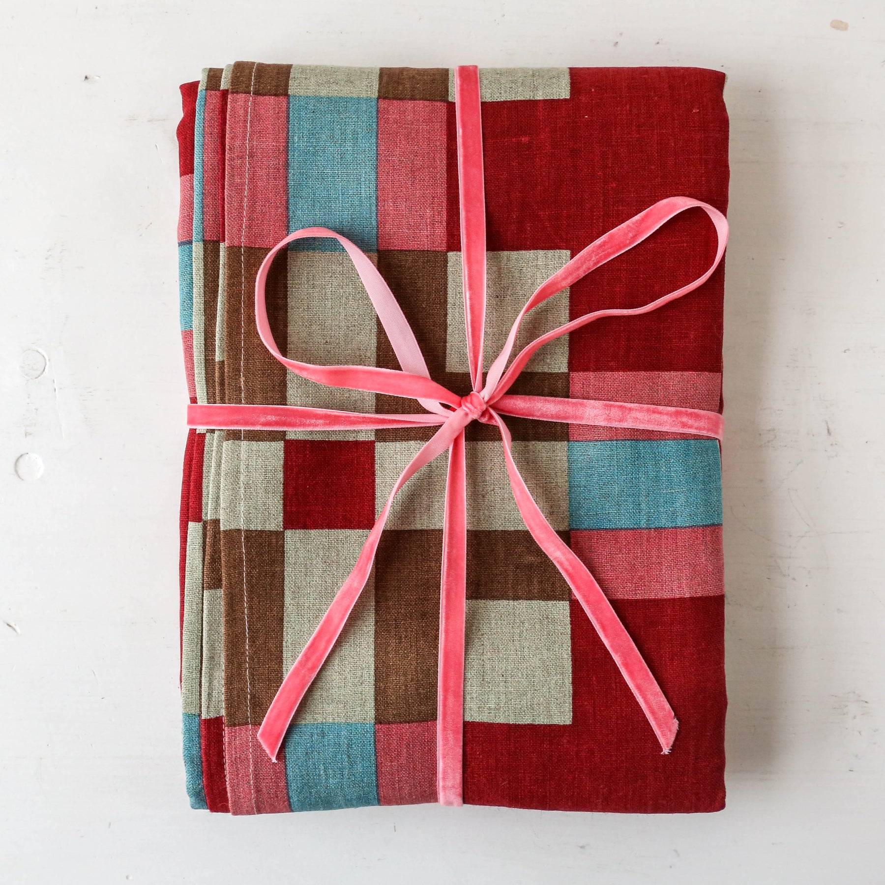 Swedish Check Linen Tablecloth - Ruby Red