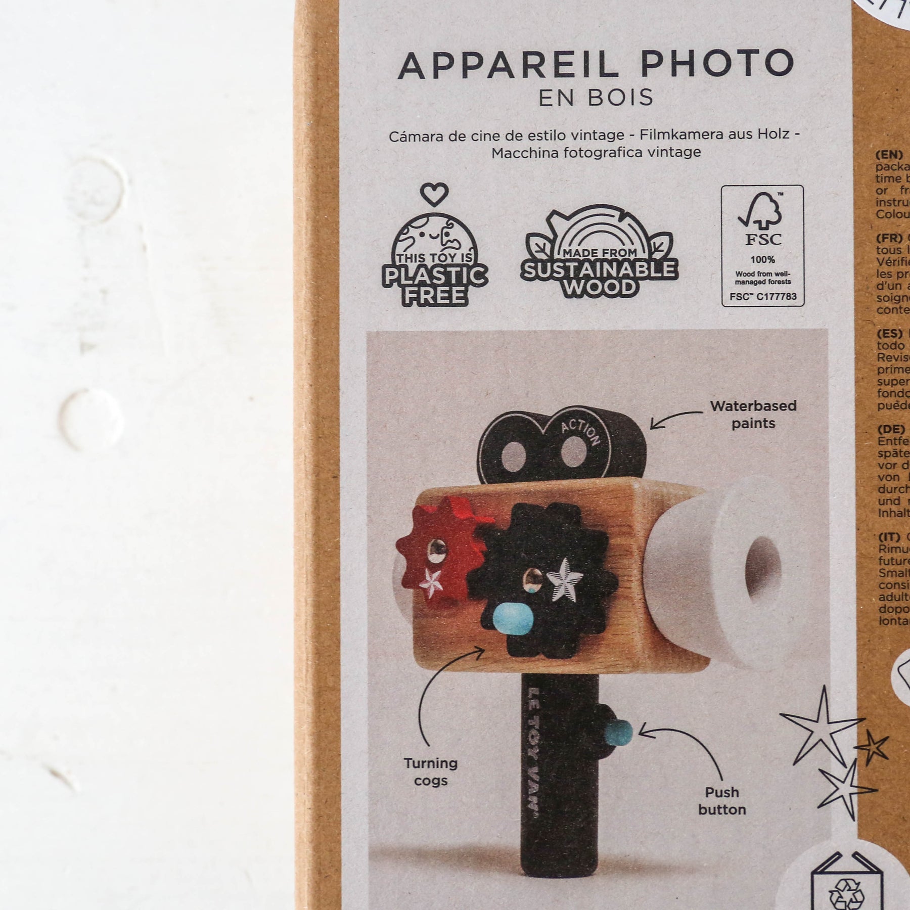 Designed by our talented toy makers, this vintage style camera has striking look complete with spinning cogs and lens for extra layers of discovery. Beautifully crafted from FSC®-certified sustainable wood and built to last for magical play that stands the test of time.