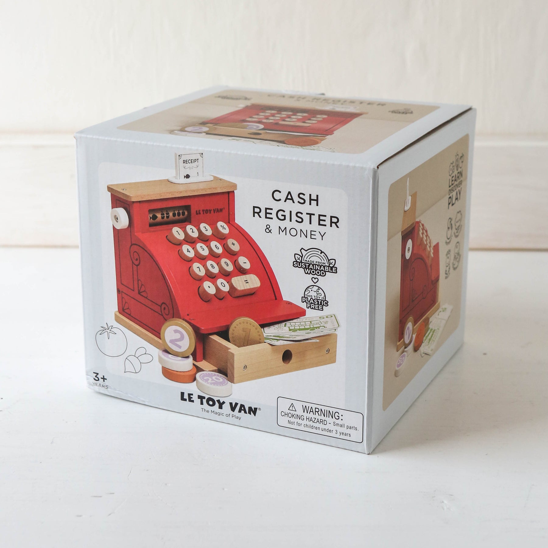 Comprising a host of features and accessories, including a wooden till receipt, easy-open cash drawer plus wooden & paper play money.