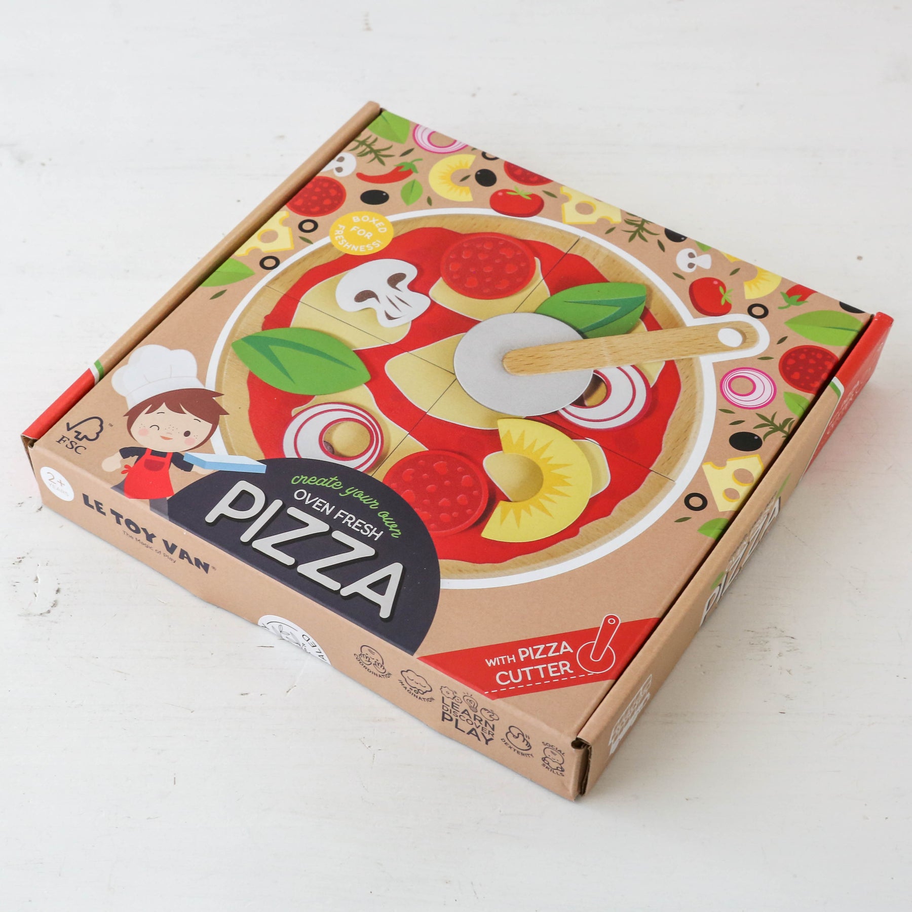 Little chefs will get busy decorating their very own pizza, complete with removable toppings plus a handy pizza cutter, all presented in pizza box packaging made for realistic play. Teach little ones about the different food groups and encourage healthy eating through play.