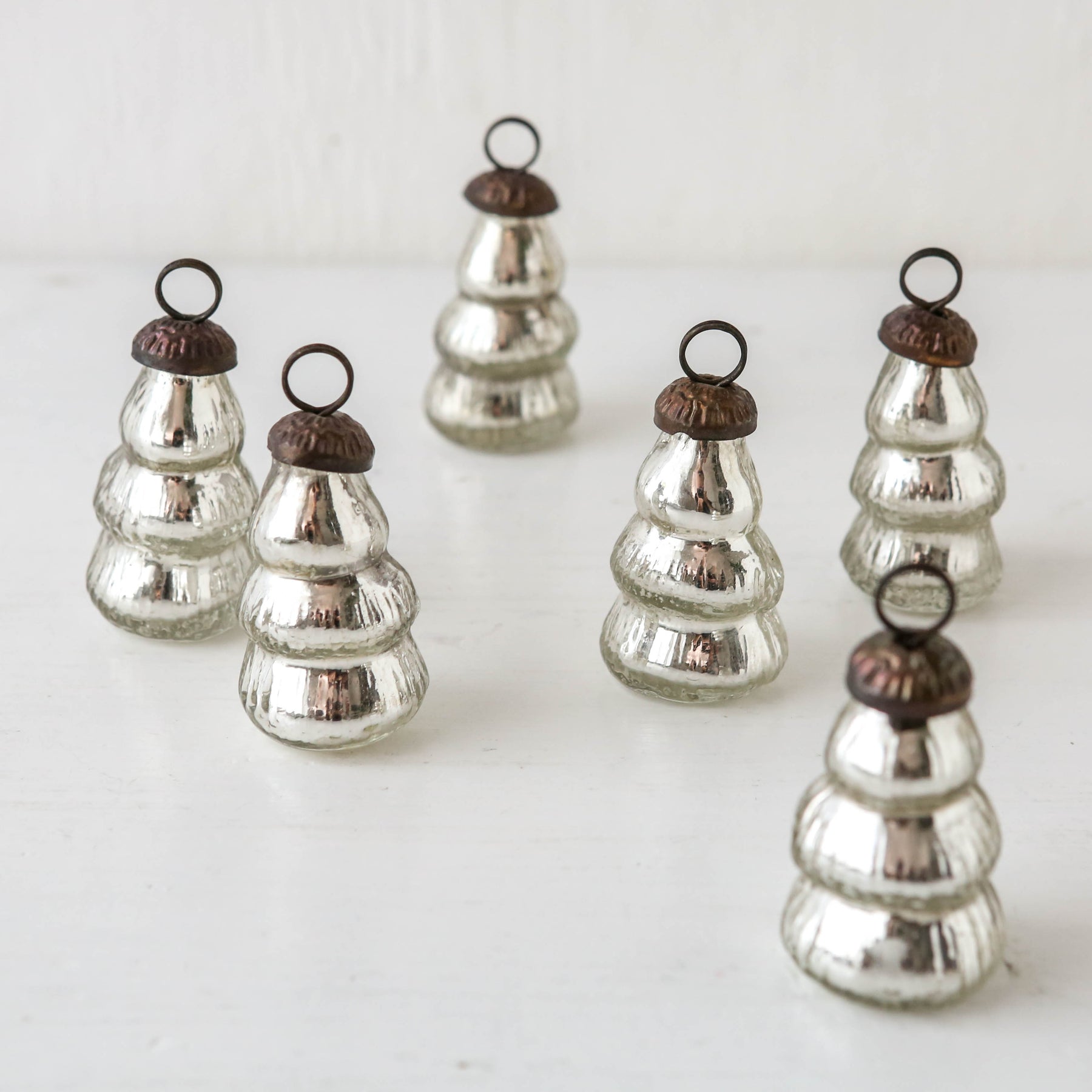 Elegant set of 6 silver glass name place card holders, crafted in the shape of Christmas trees. Ideal for dinner parties or family gatherings, they bring a delightful sparkle to any table setting.