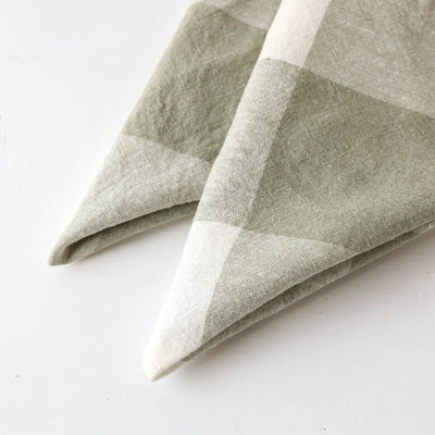 A pair of beautifully soft, washed napkins in natural check.