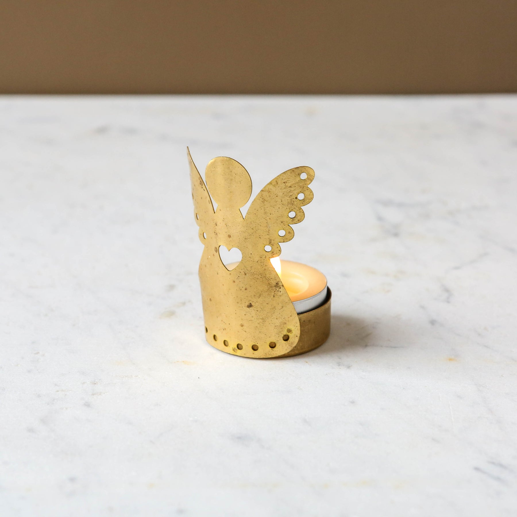 Pretty brass angel tea light holder; pair with any tealight sized candles in our range for a perfect gift.