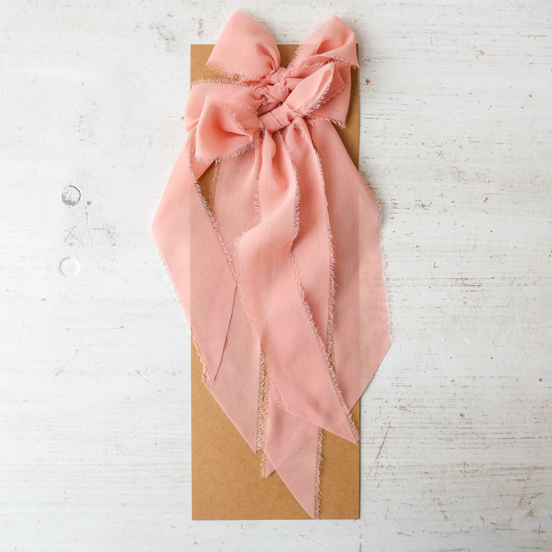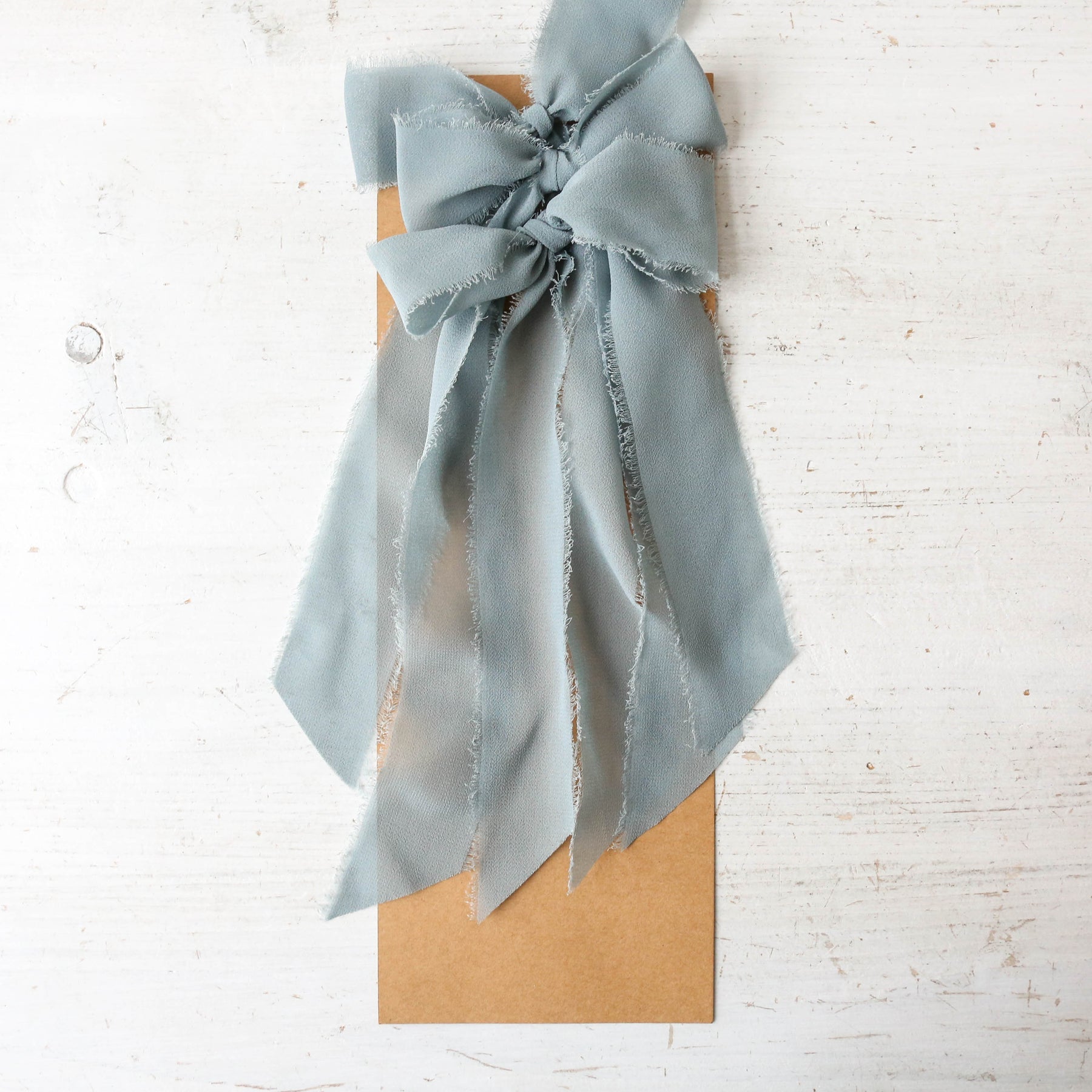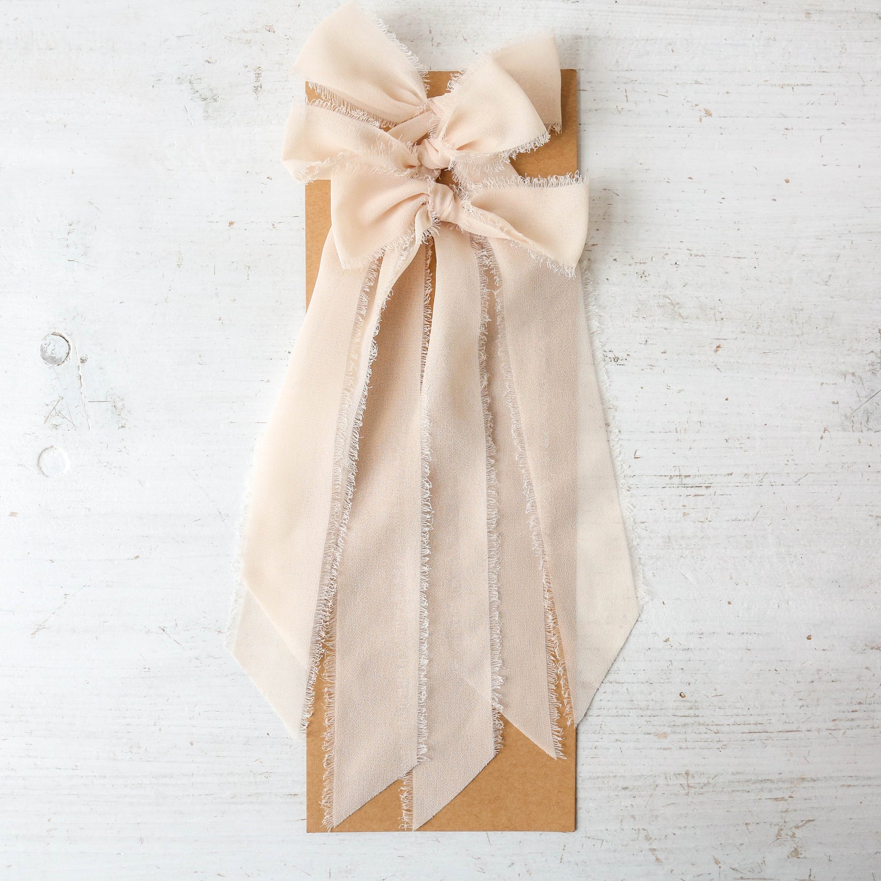 A pack of three, perfectly-tied tree bows, in a raw finished, chiffon ribbon. Chiffon is fabulously drape-y, for a bow that doesn't look like it's trying too hard. Perfect. Add to your tree, wreath or foliage display.