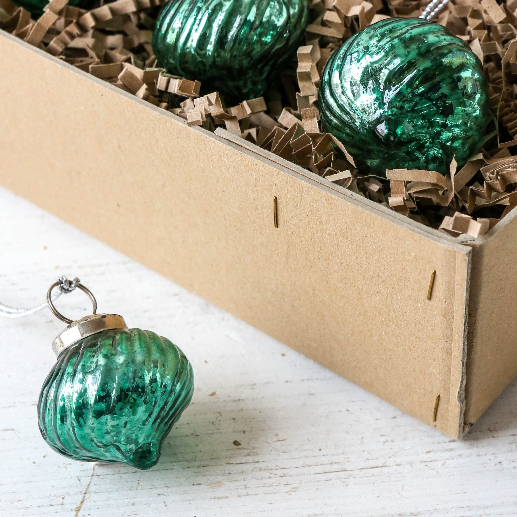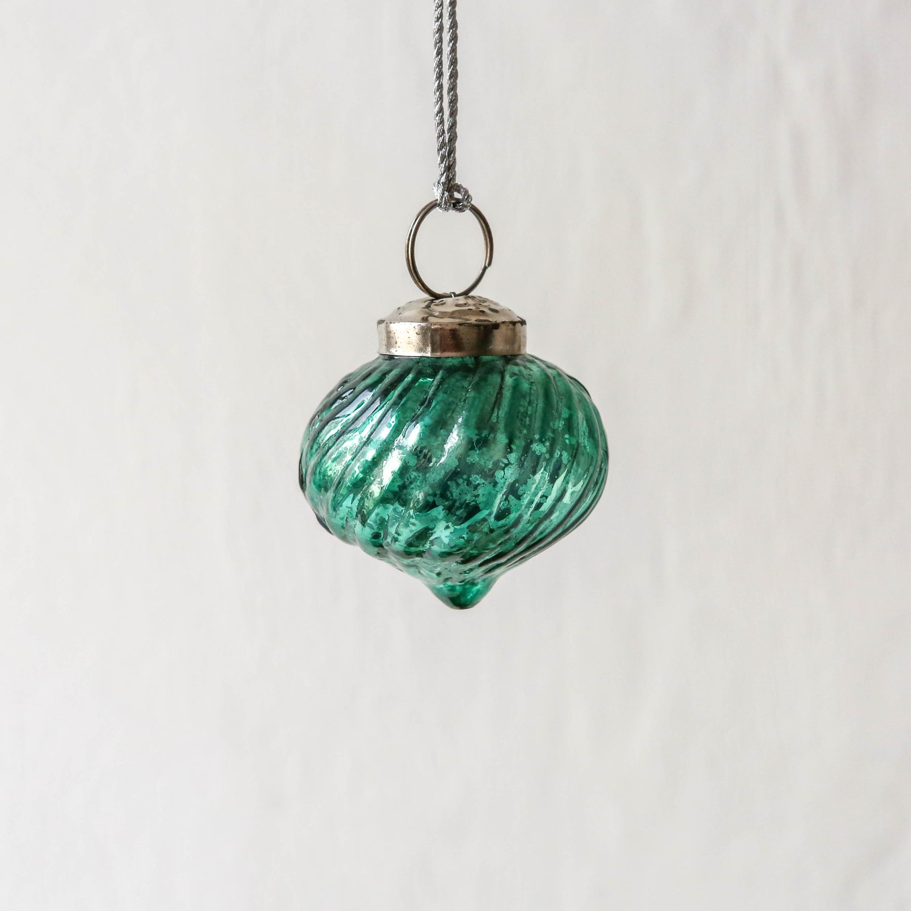 4cm Swirled Onion Shaped Glass Bauble - Shiny Green