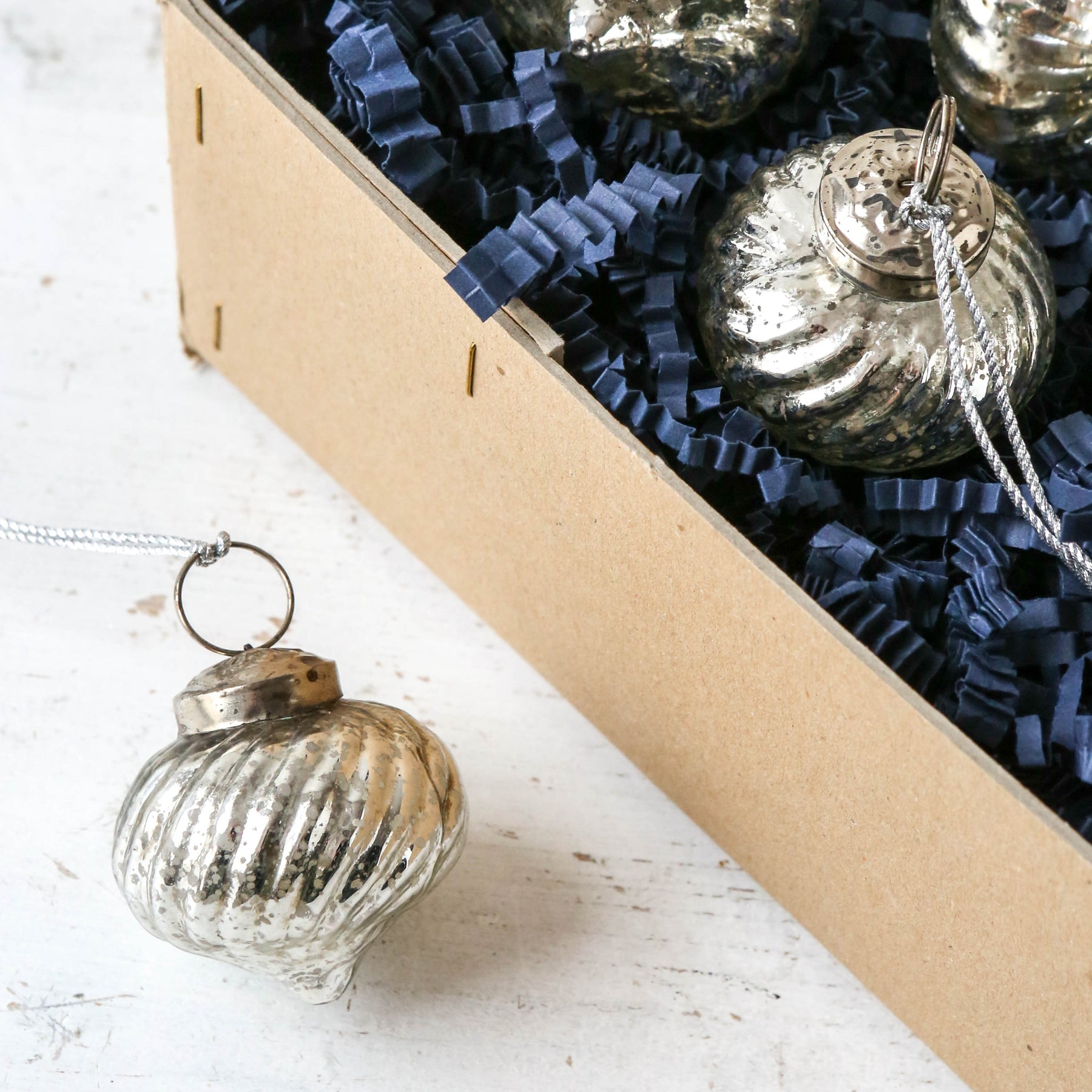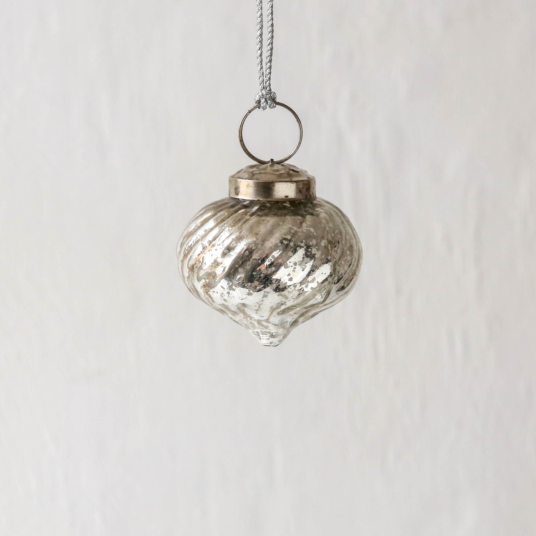 4cm Swirled Onion Shaped Glass Bauble - Silver