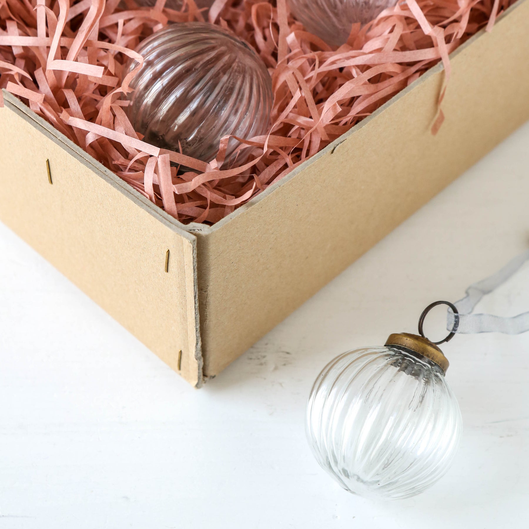 A Medium sized hand-blown ribbed glass ball. Approximately 5cm in size with an ornate bronze cap.