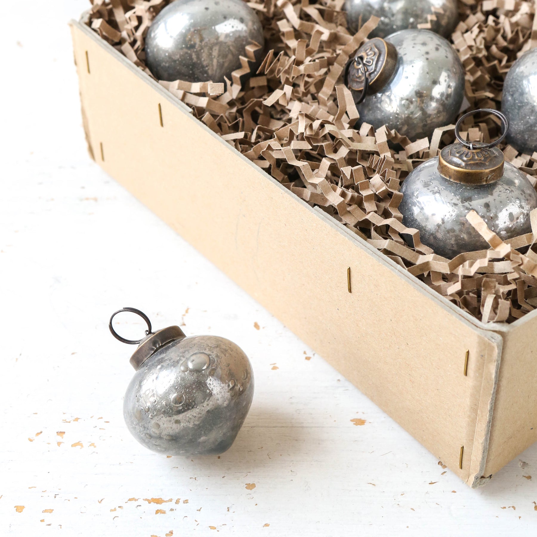 Distressed glass, onion shaped bauble.