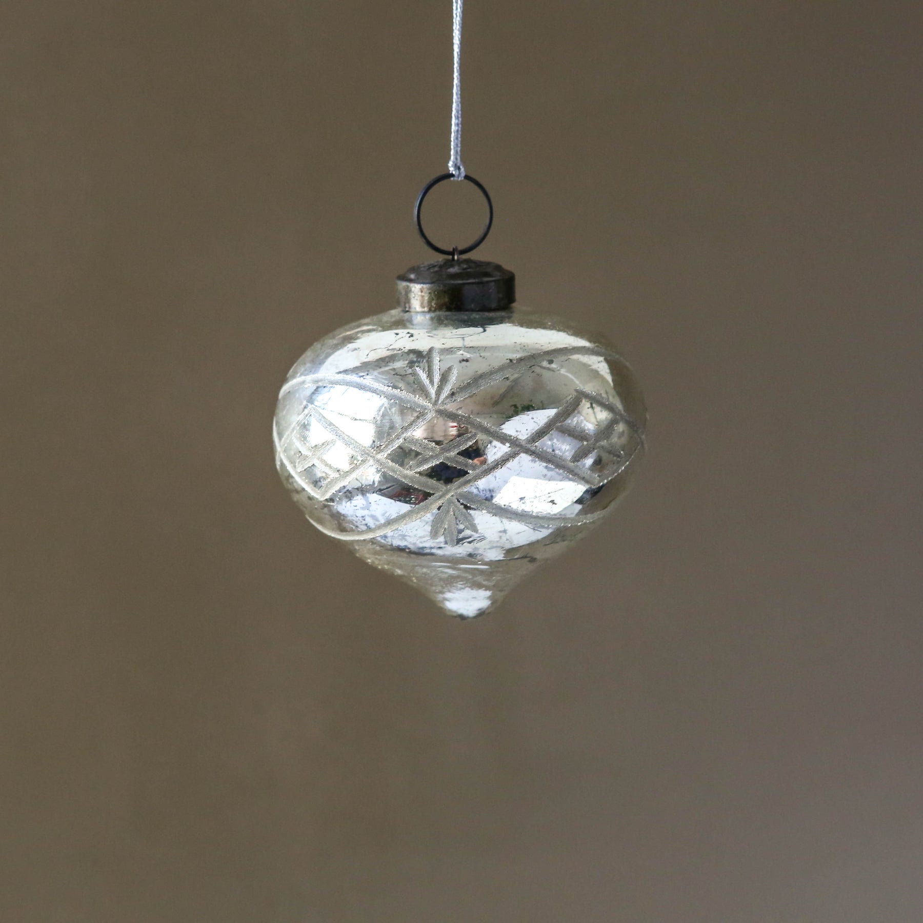 7cm Etched Onion Bauble - Antique Silver