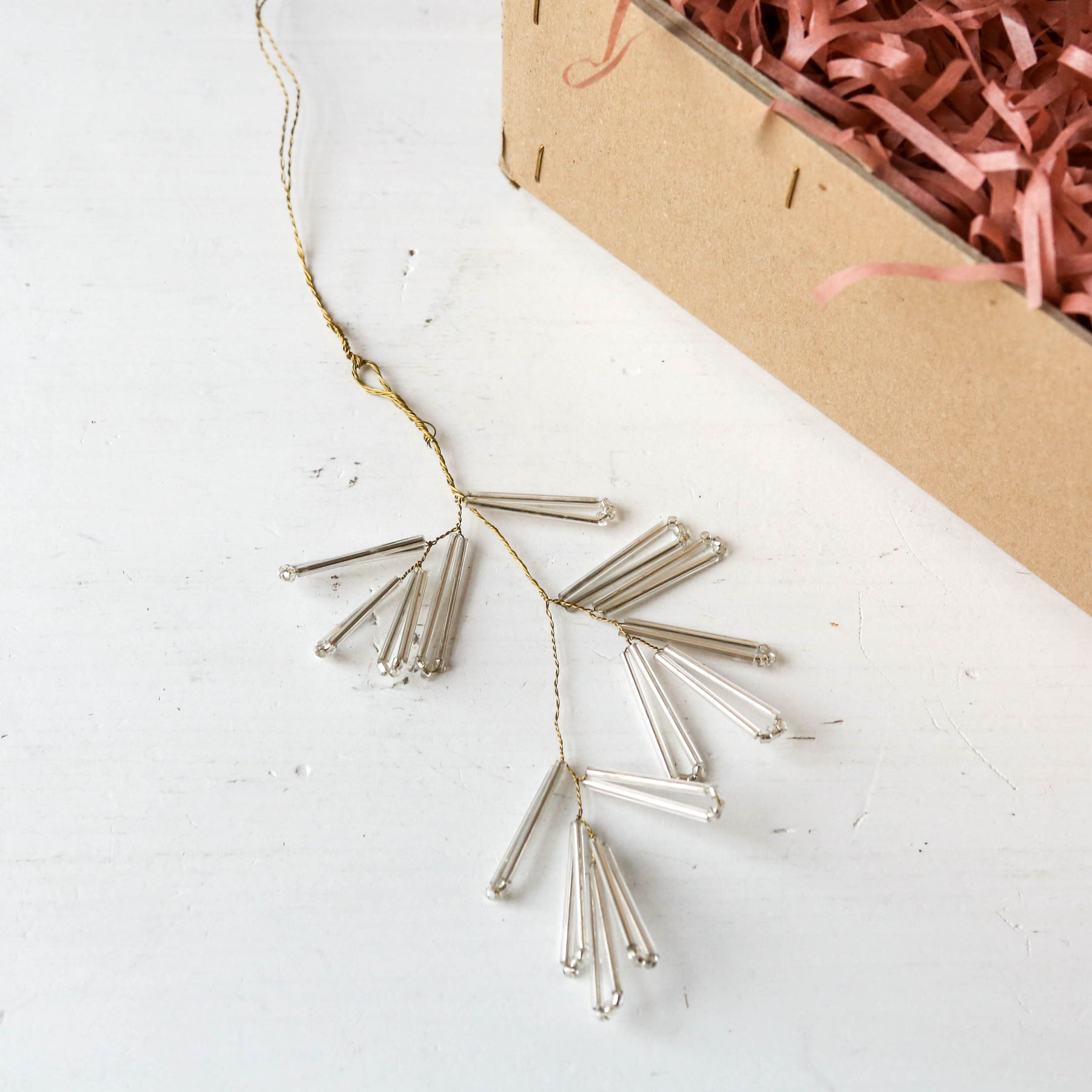 Twisted wire decoration made with pretty, silver-tone glass beads. The beads reflect light beautifully!