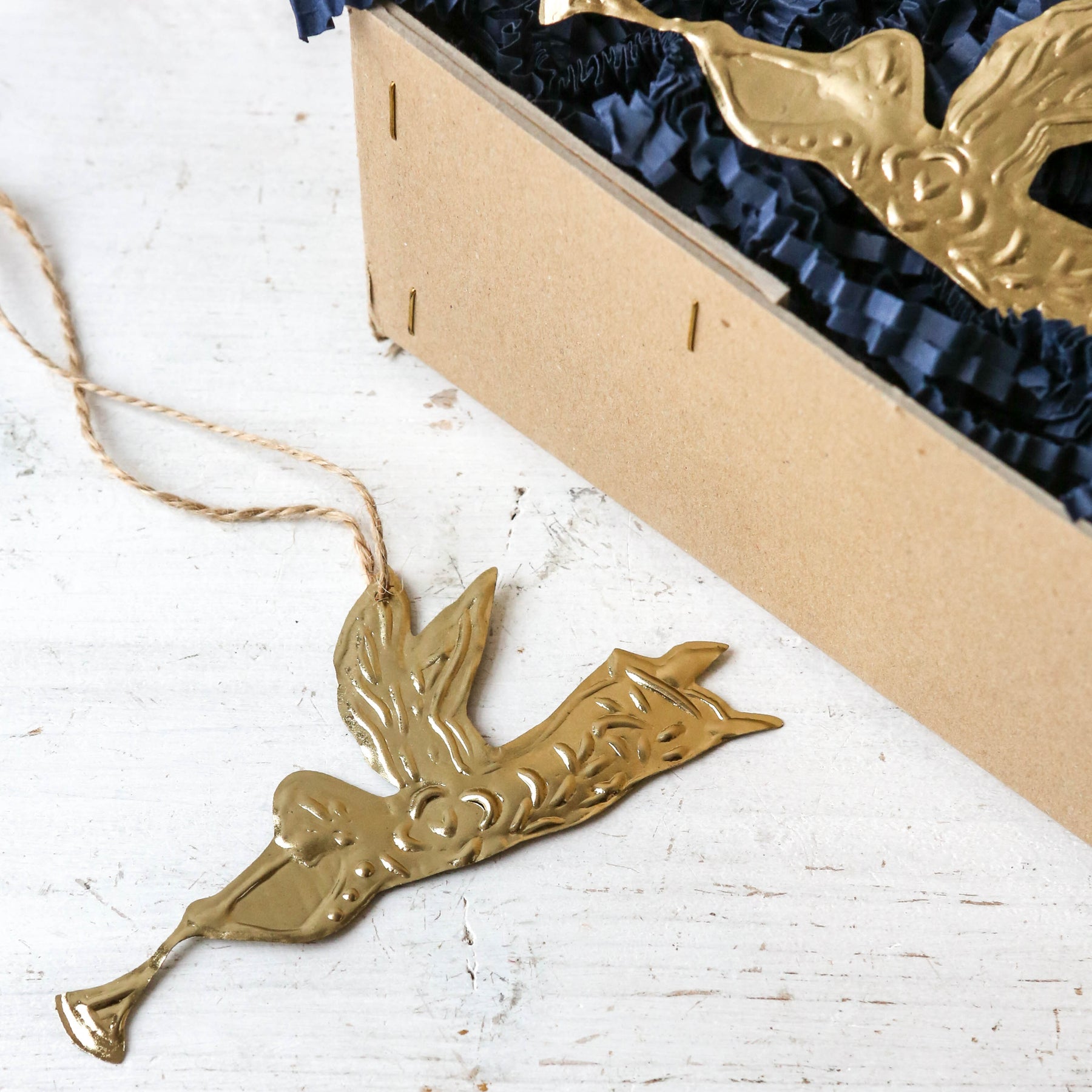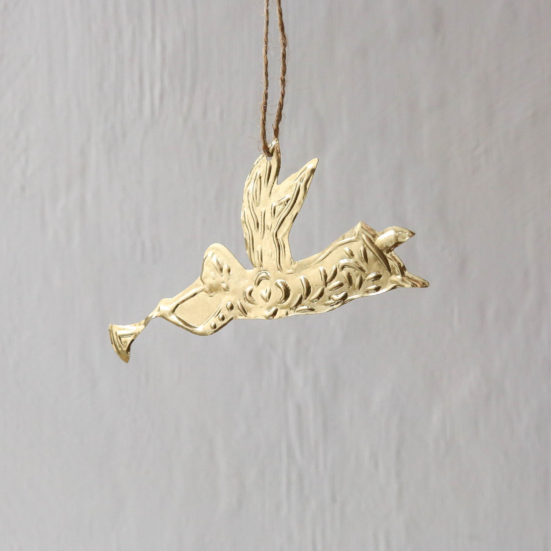 A pretty hanging flying angel decoration. Probably a Christmas decoration, but you might end up leaving it up all year...