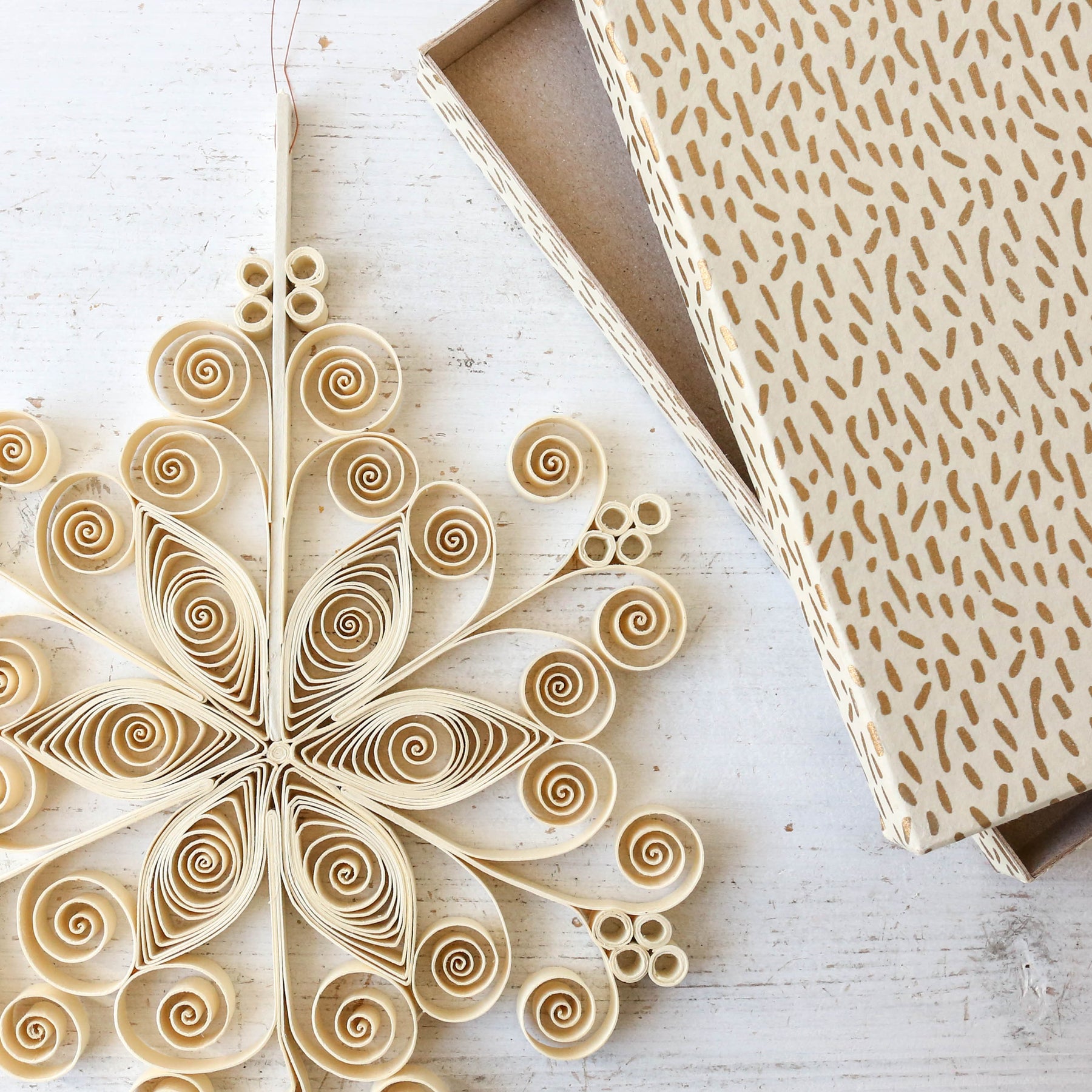 A quilled star Christmas decoration; wire to the top of your tree or hang from a door or in your window.