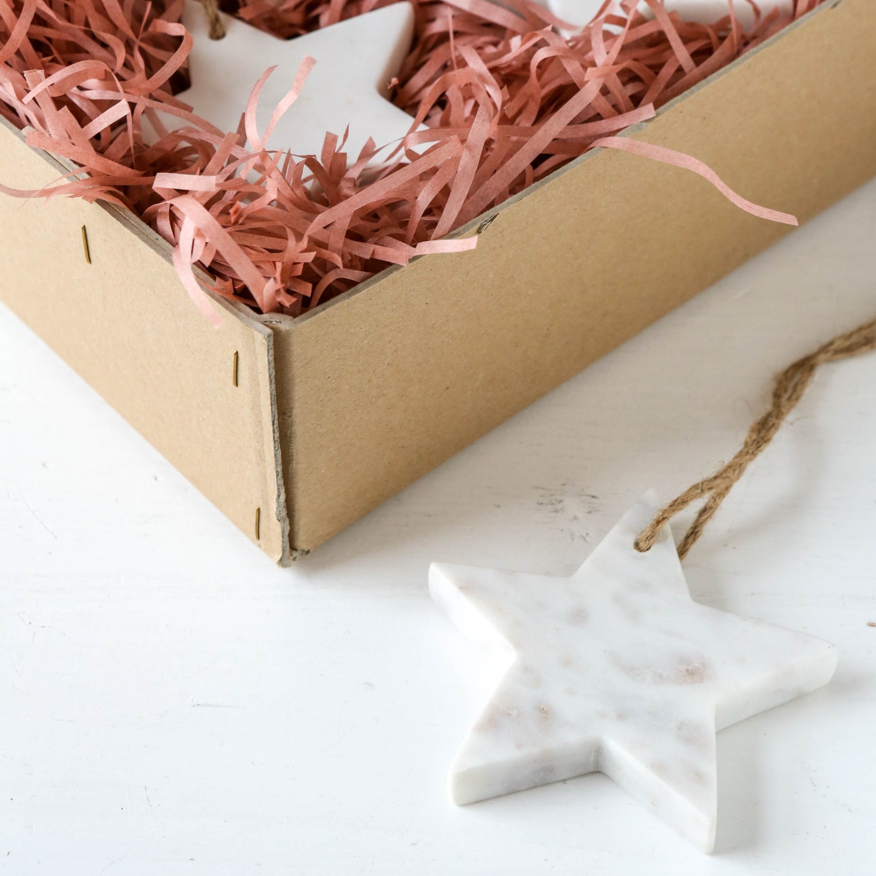 Each decoration is delicately hand crafted using traditional methods in India. A simple Scandi design, elevated with the use of this luxurious material.