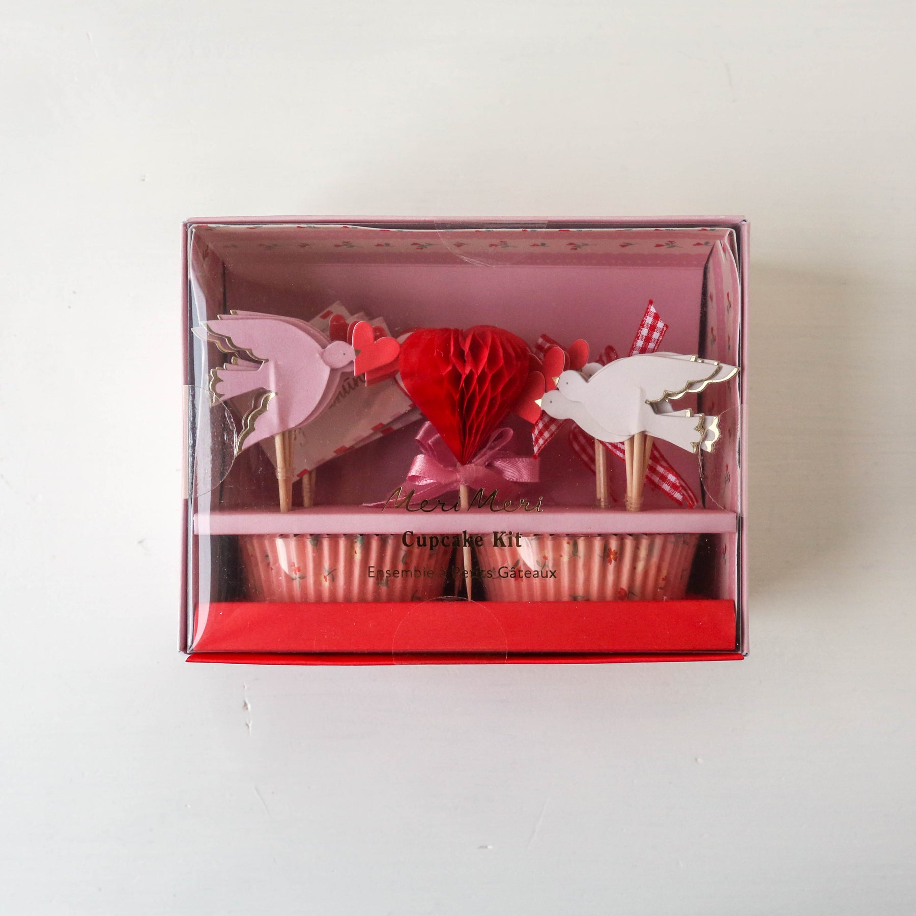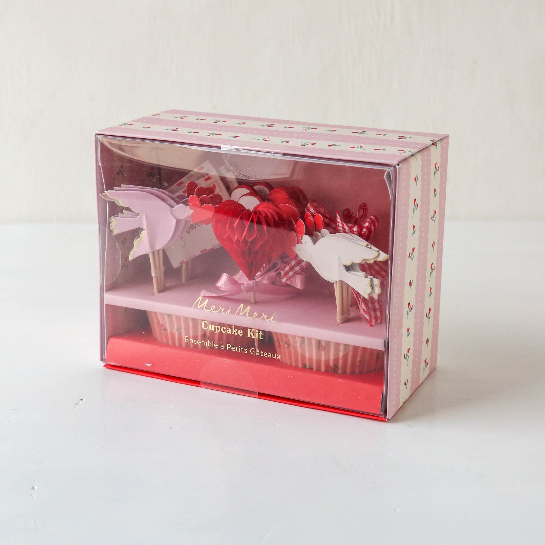 Make sugary treats look even sweeter this Valentine's Day with Meri Meri's special pink and red cupcake kit. Featuring Victorian-meets-Parisian charm, it includes romantic icons and ribbons for the cake toppers, as well as love-heart and flower cupcake cases. All are beautifully packaged in a box with a pretty design. Arrange them on a platter as a mouth-watering Valentine's centrepiece or serve them to delight your party guests.