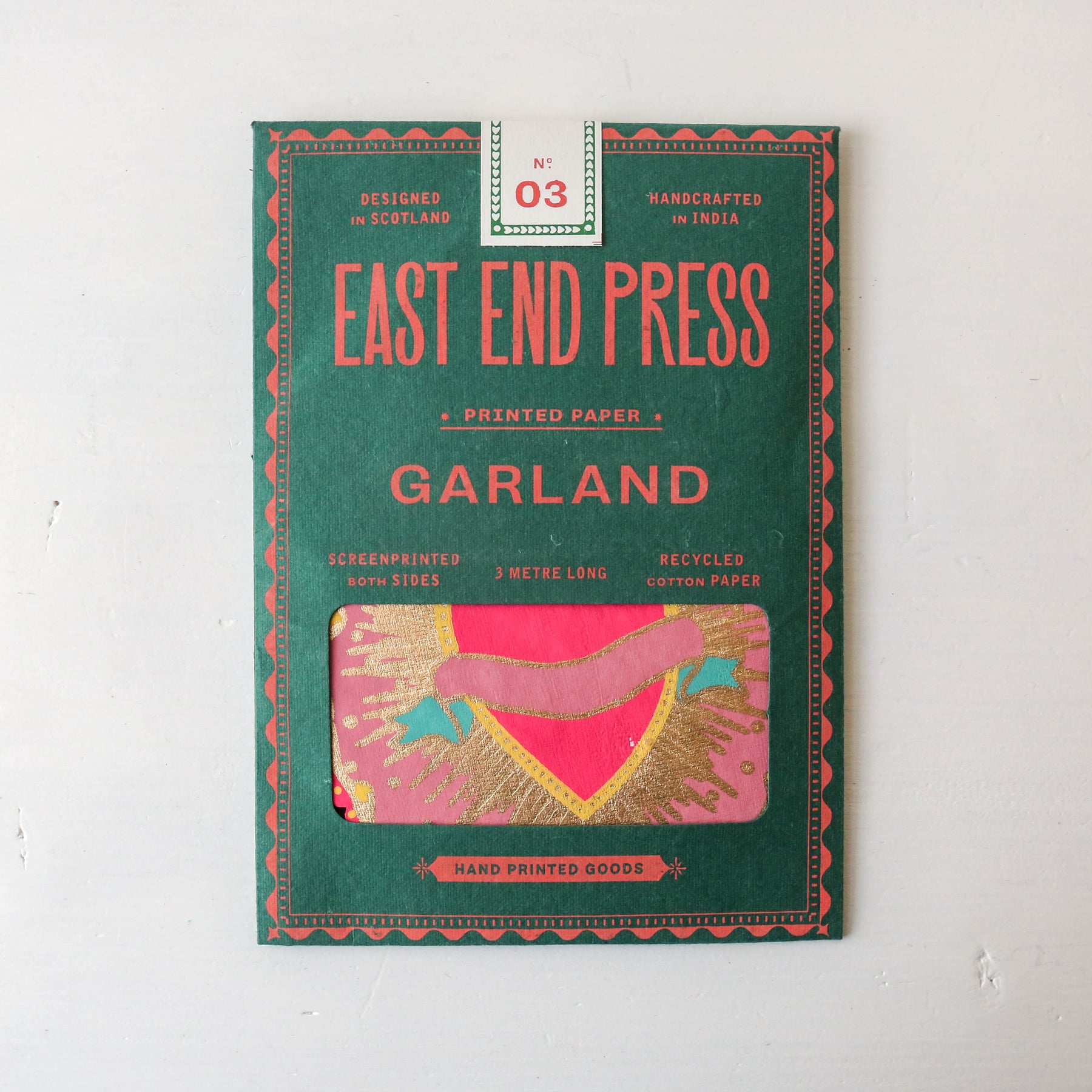 Inspired by scared hearts and Mexican folk art, this garland is full of kitsch and romance. Ten decorative, bejewelled hearts create the three metre garland.