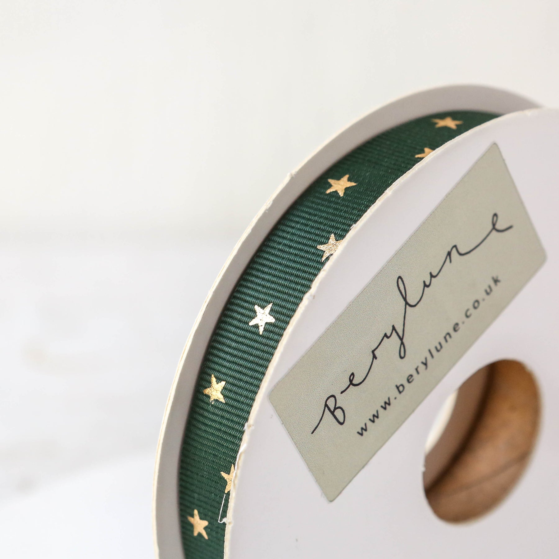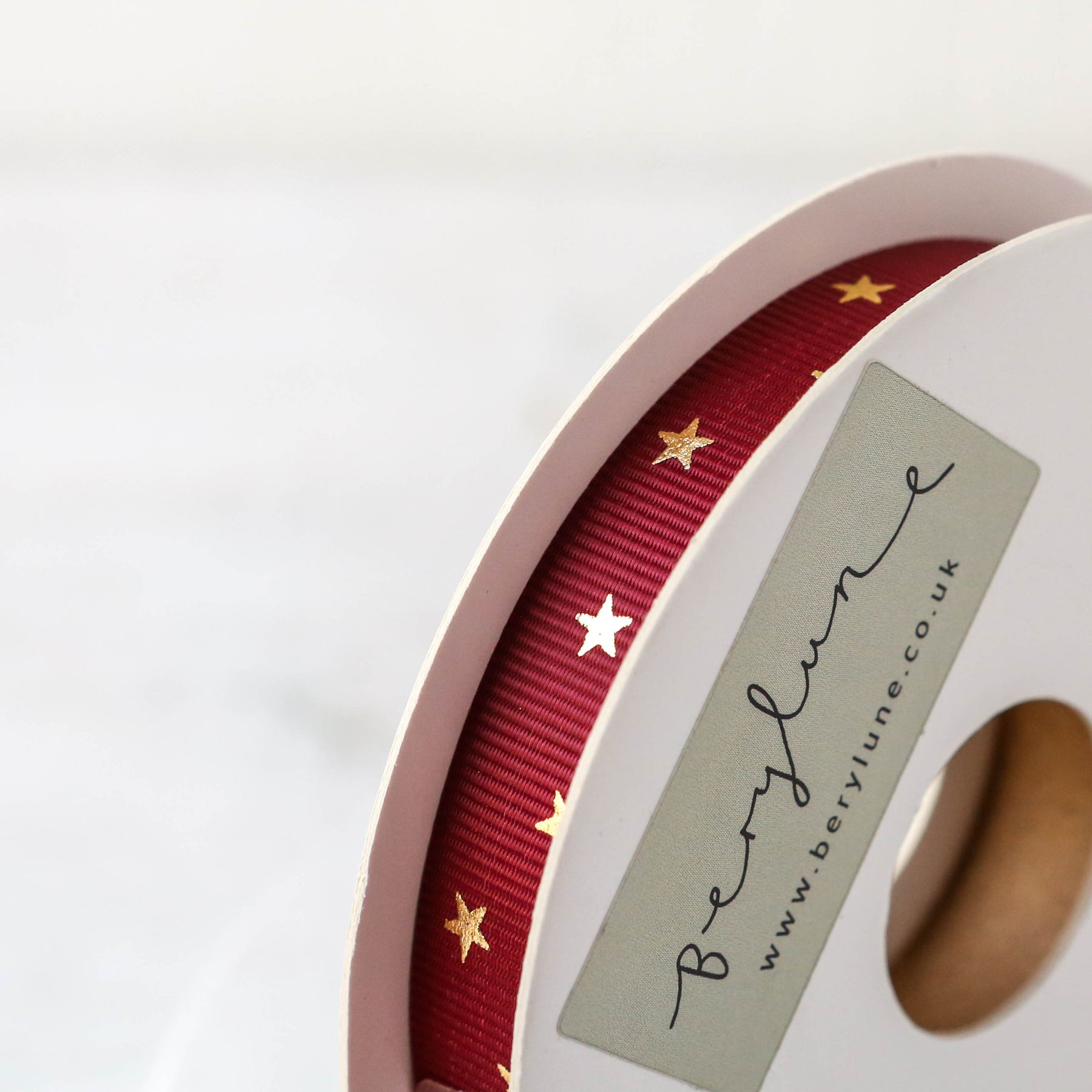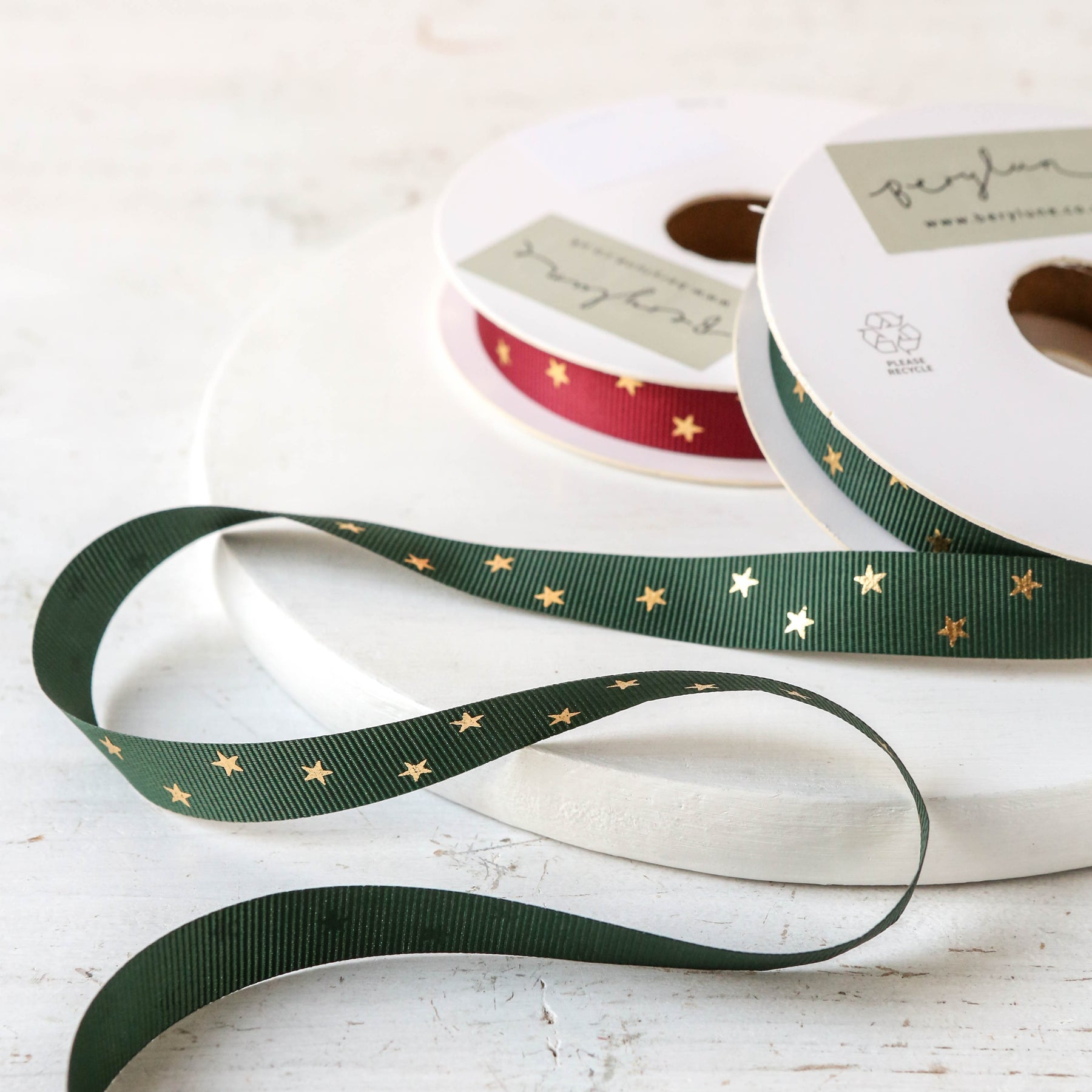 Roll of 20 meters of 15mm grosgrain ribbon with gold stars. Available in two colours, perfect for gift wrapping.